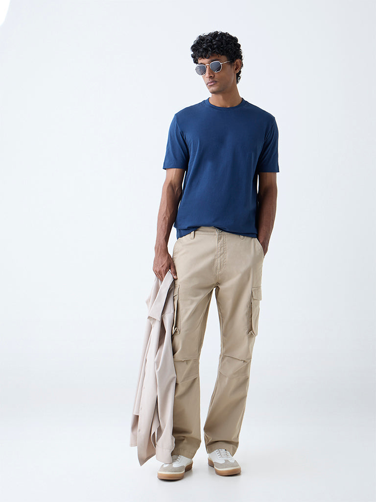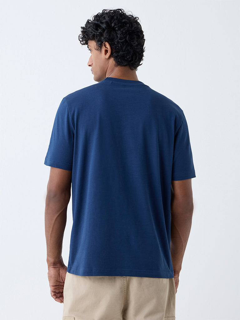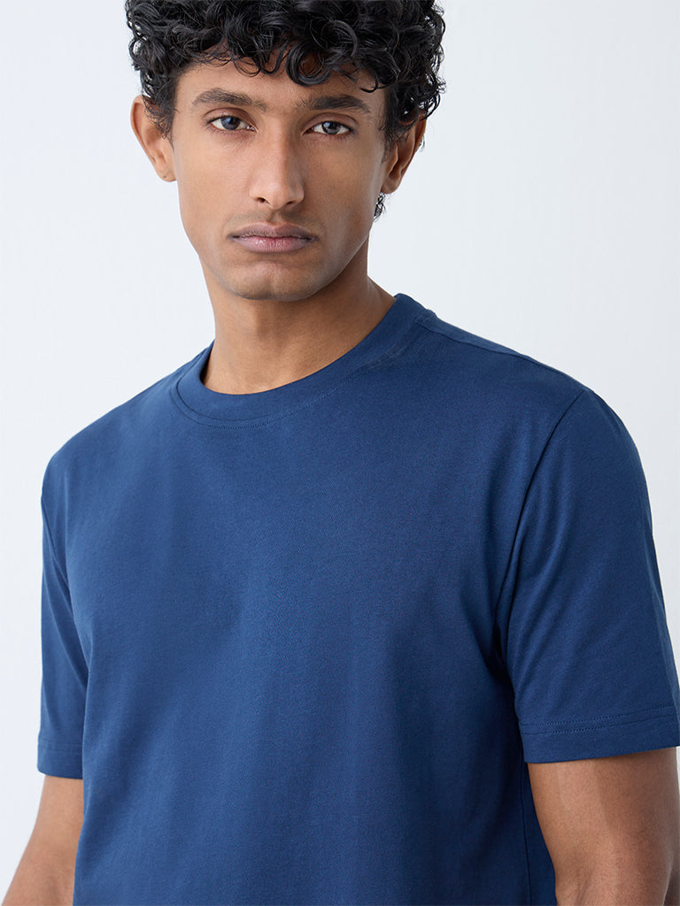 WES Casuals Navy Solid Slim-Fit Cotton T-Shirt
