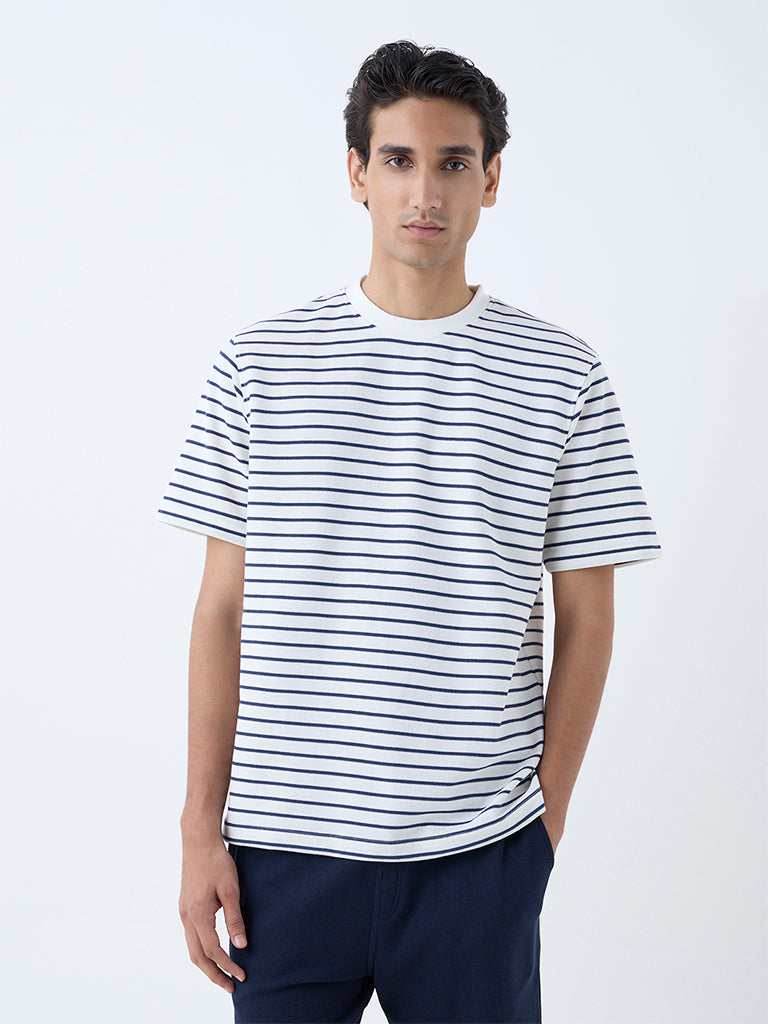WES Casuals Navy Stripe Relaxed-Fit T-Shirt
