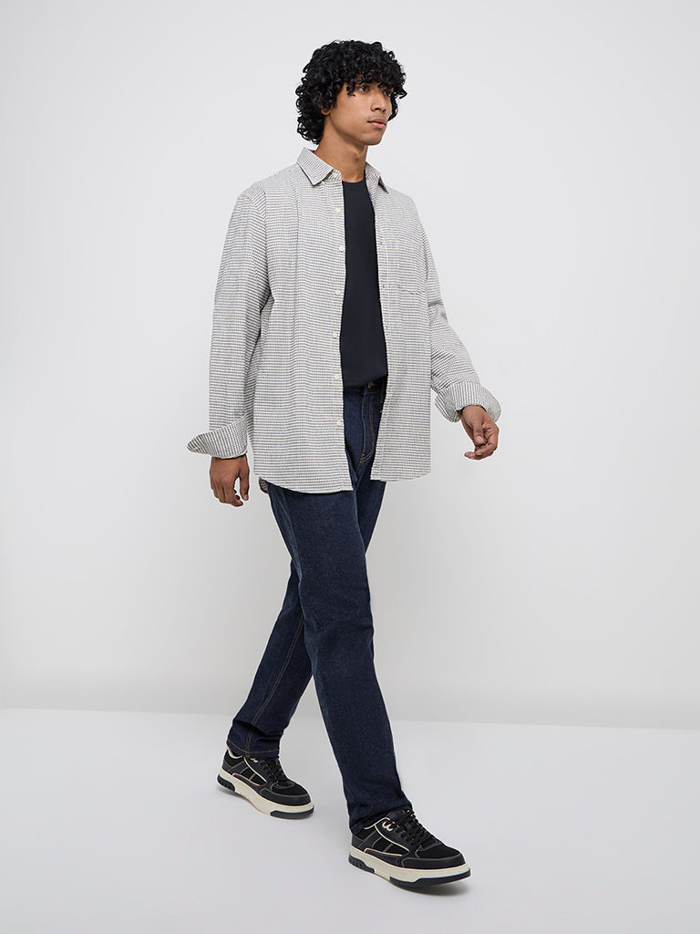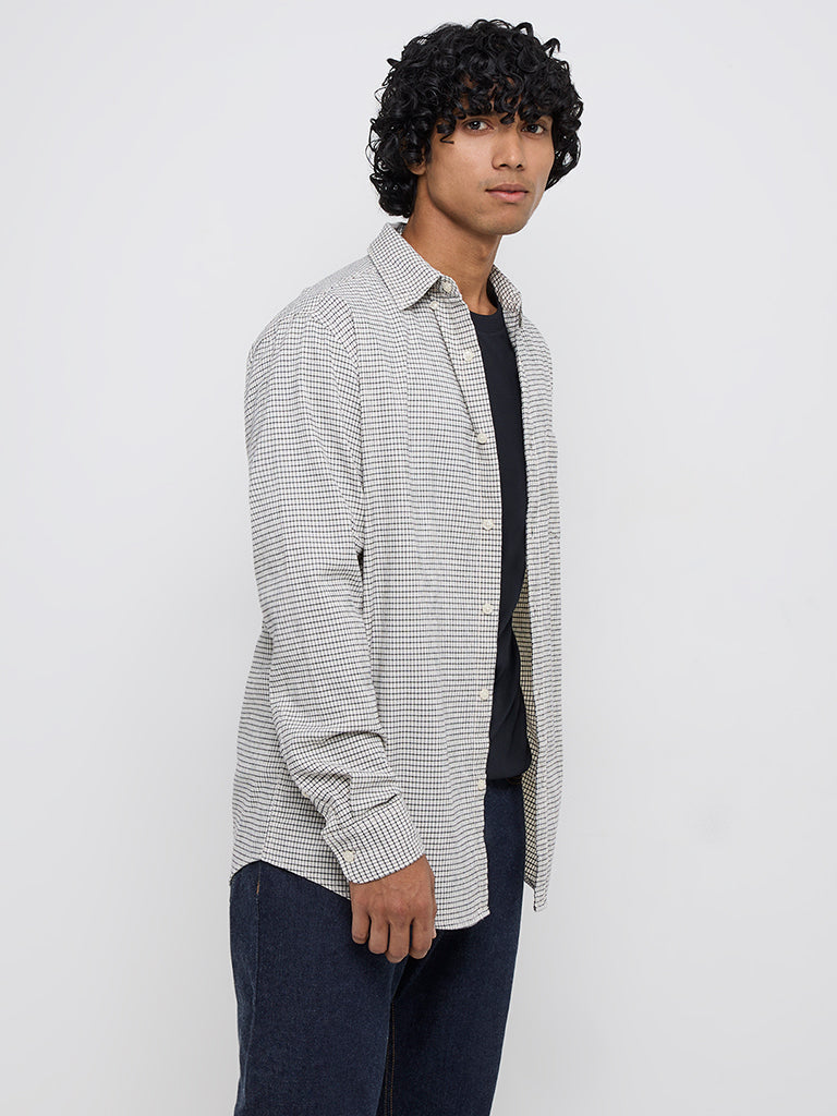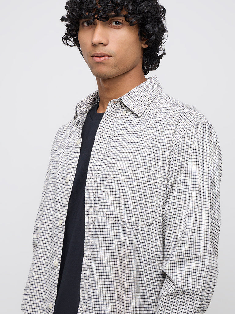 WES Casuals Off-White Checkered Relaxed-Fit Cotton-Blend Shirt