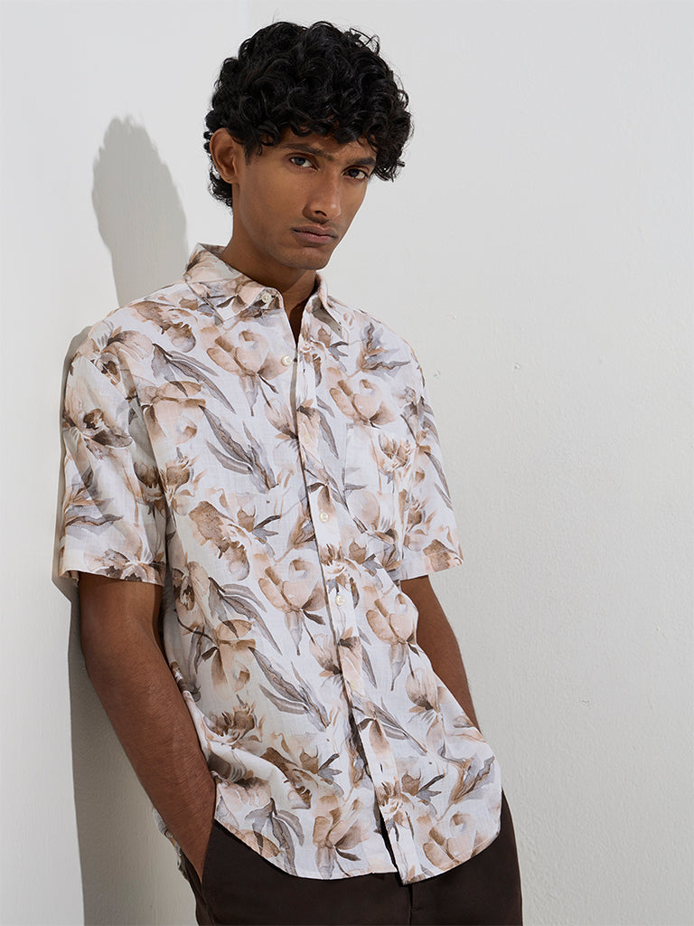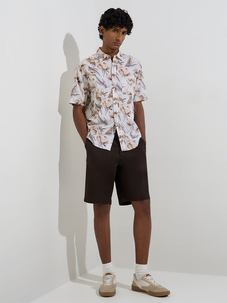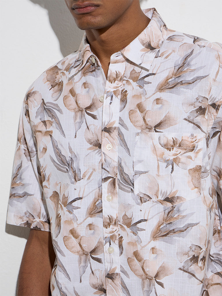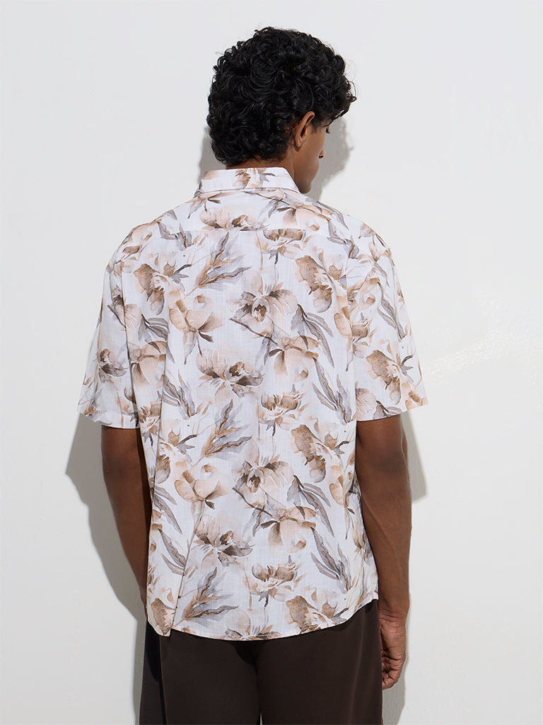 WES Casuals Off-White Floral Relaxed-Fit Cotton Shirt