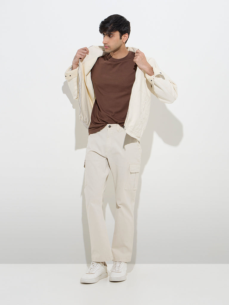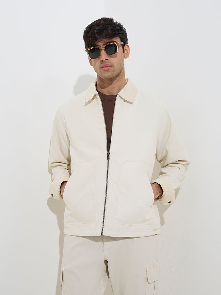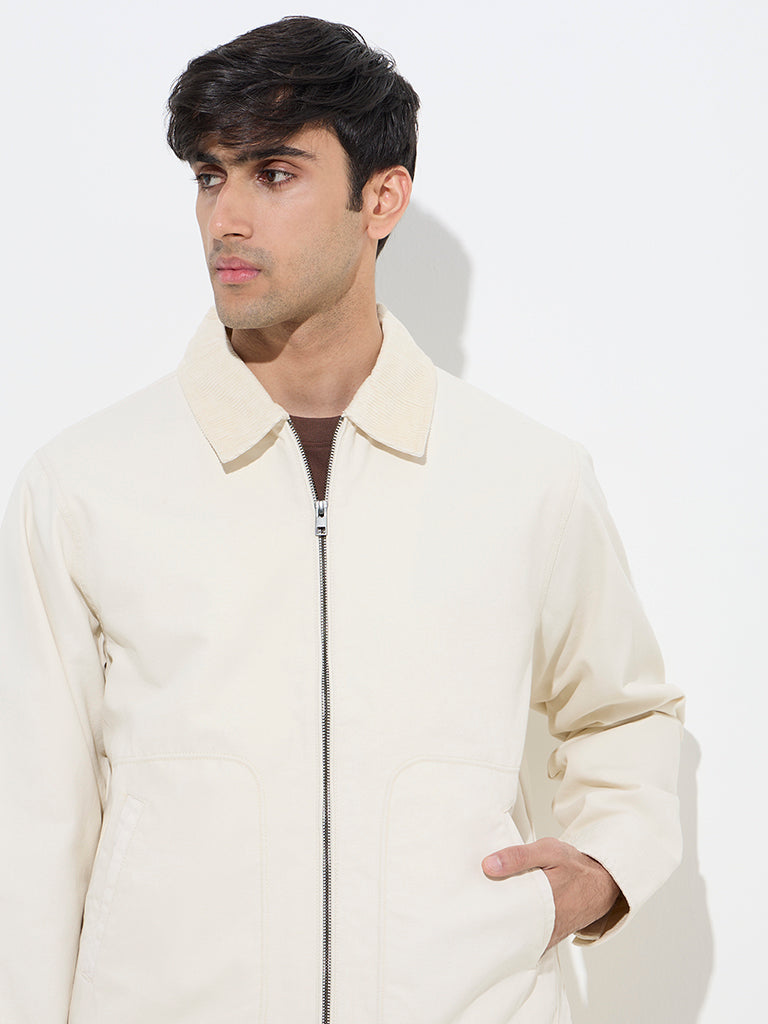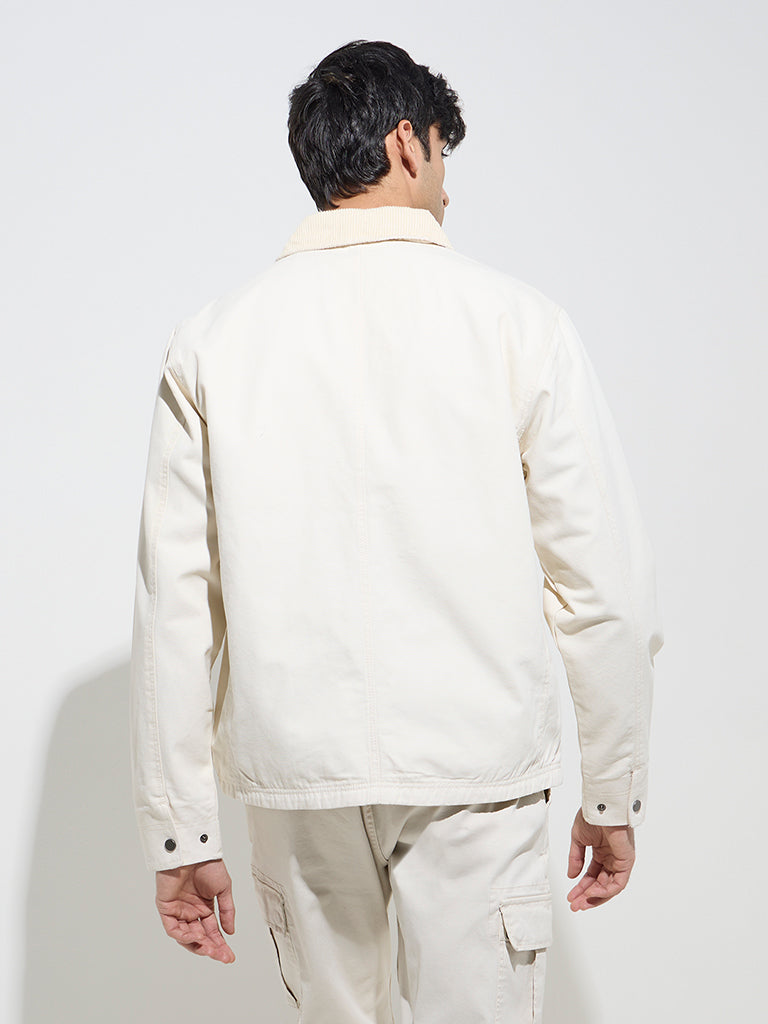 WES Casuals Off-White Relaxed-Fit Cotton Jacket