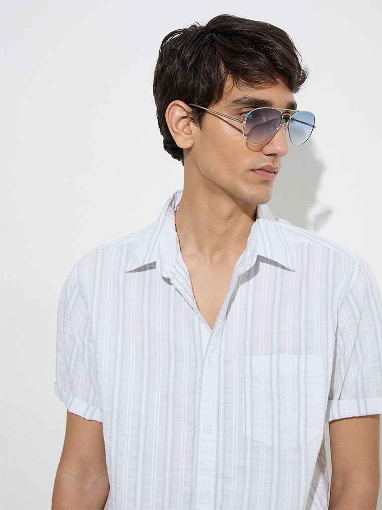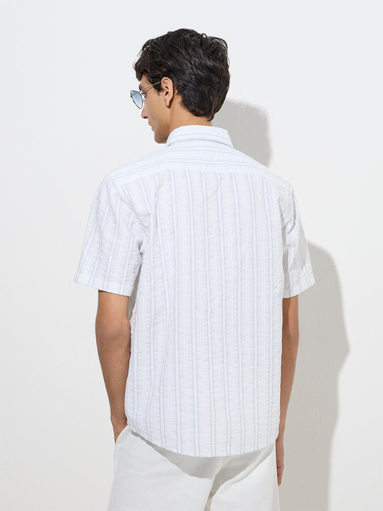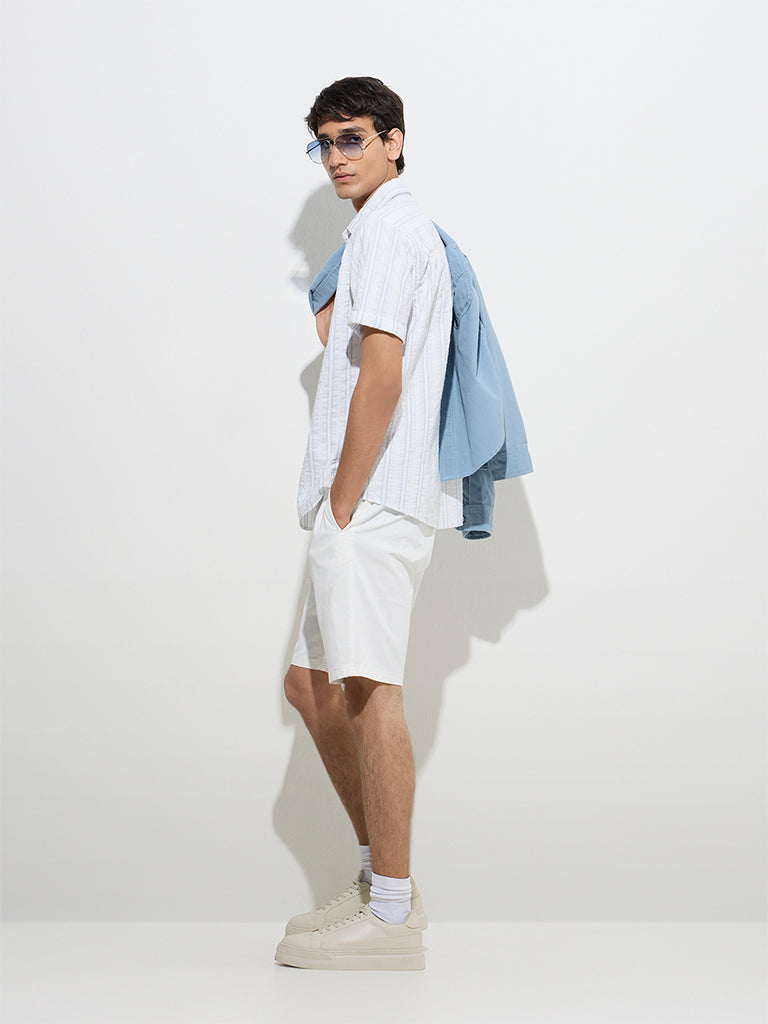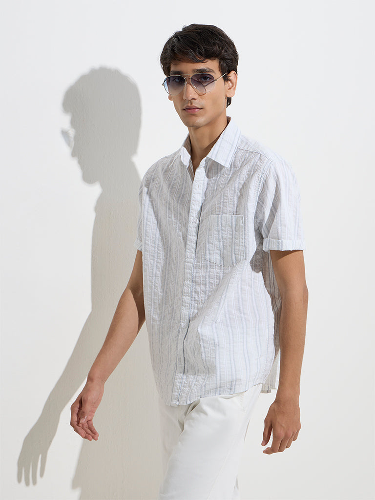 WES Casuals Off-White Striped Relaxed-Fit Cotton Shirt