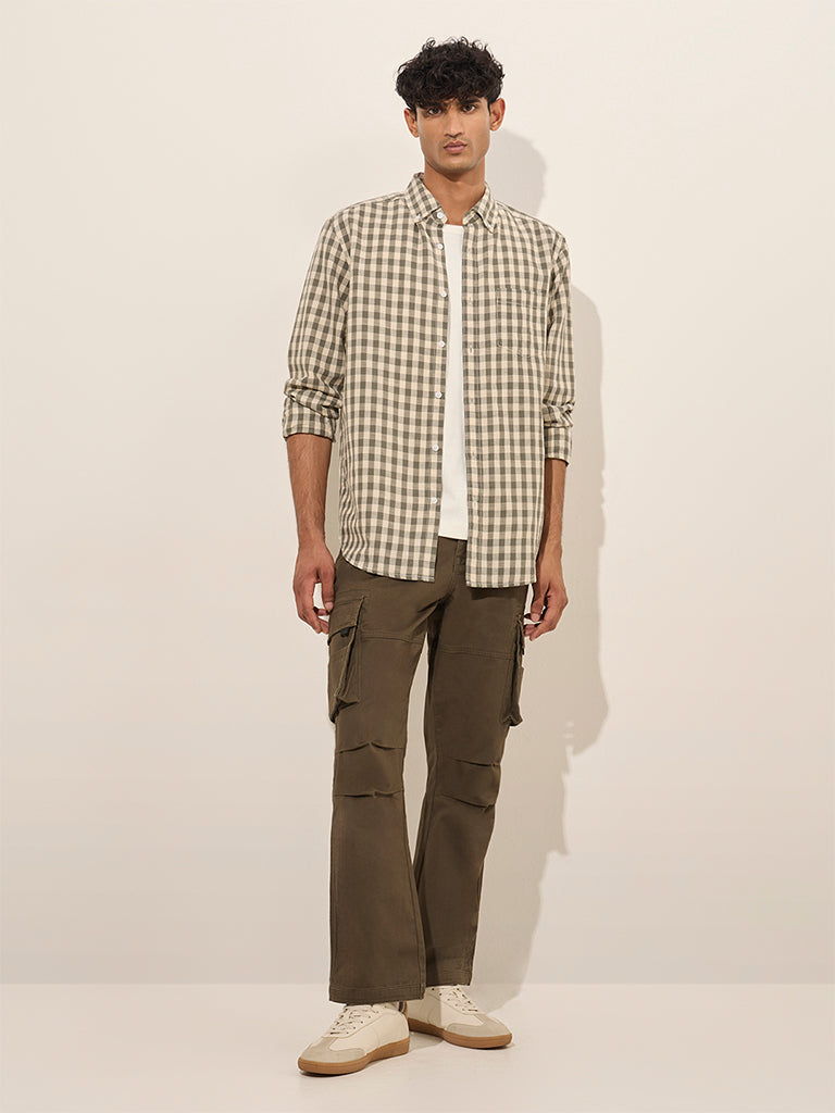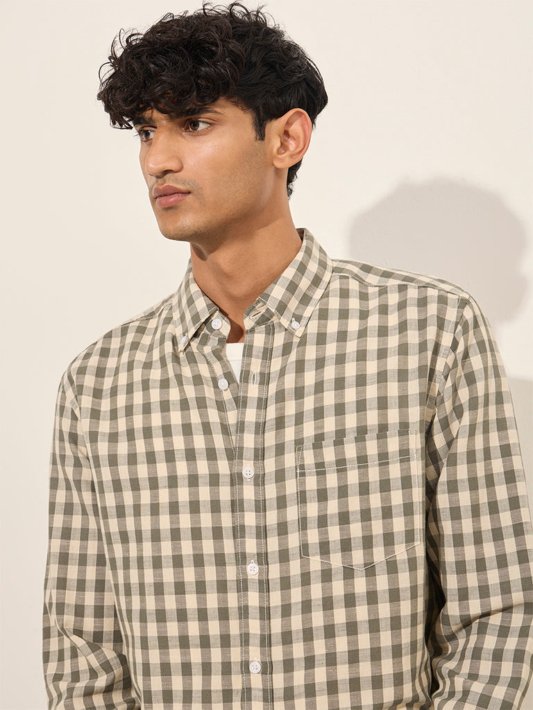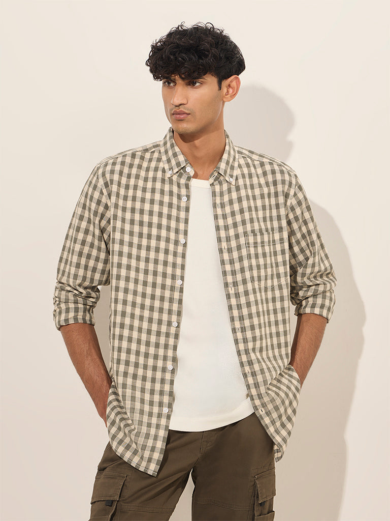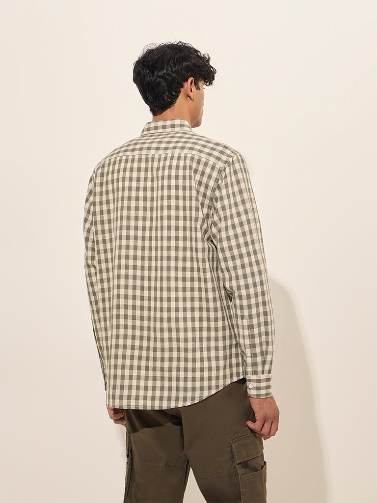 WES Casuals Olive Checks Design Relaxed-Fit Cotton Shirt