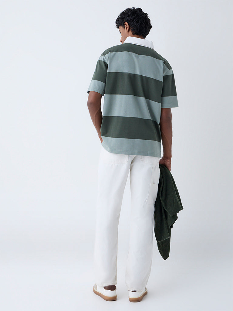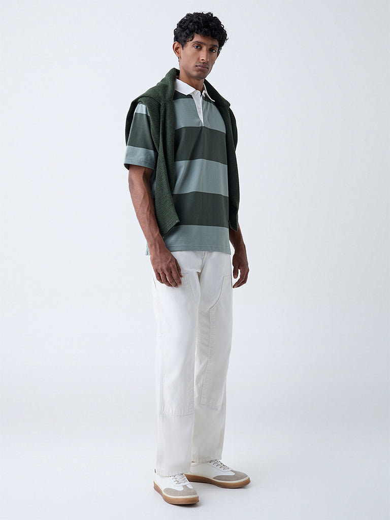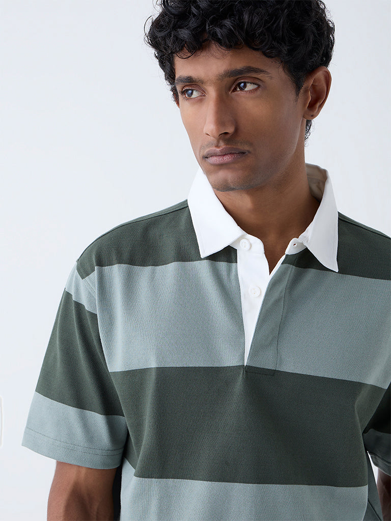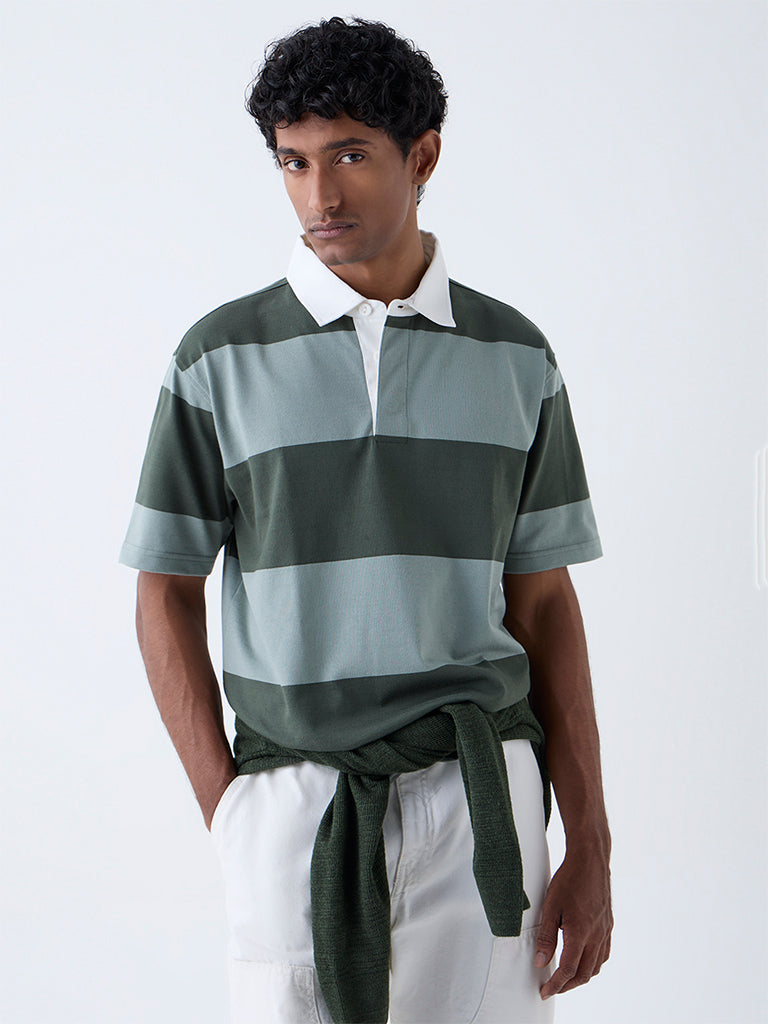 WES Casuals Olive Relaxed Fit Cotton-Blend Polo T-Shirt