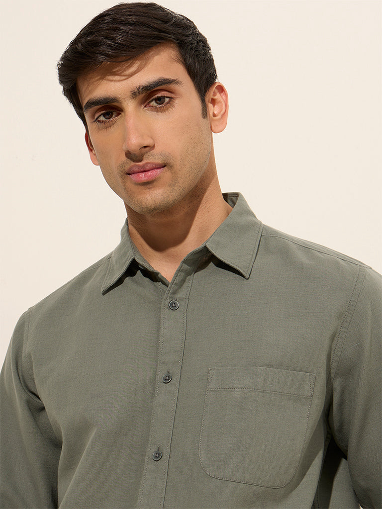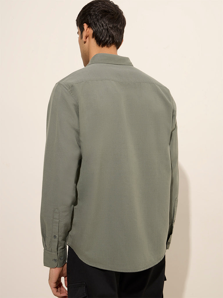 WES Casuals Olive Relaxed-Fit Cotton-Blend Shirt