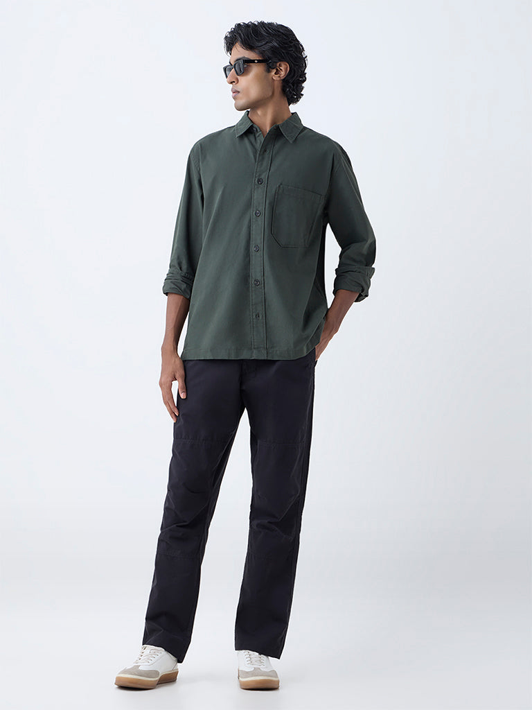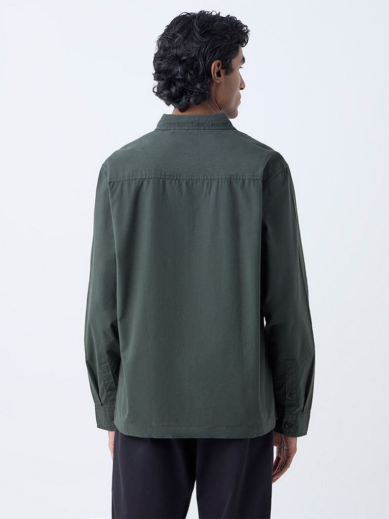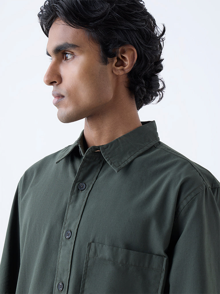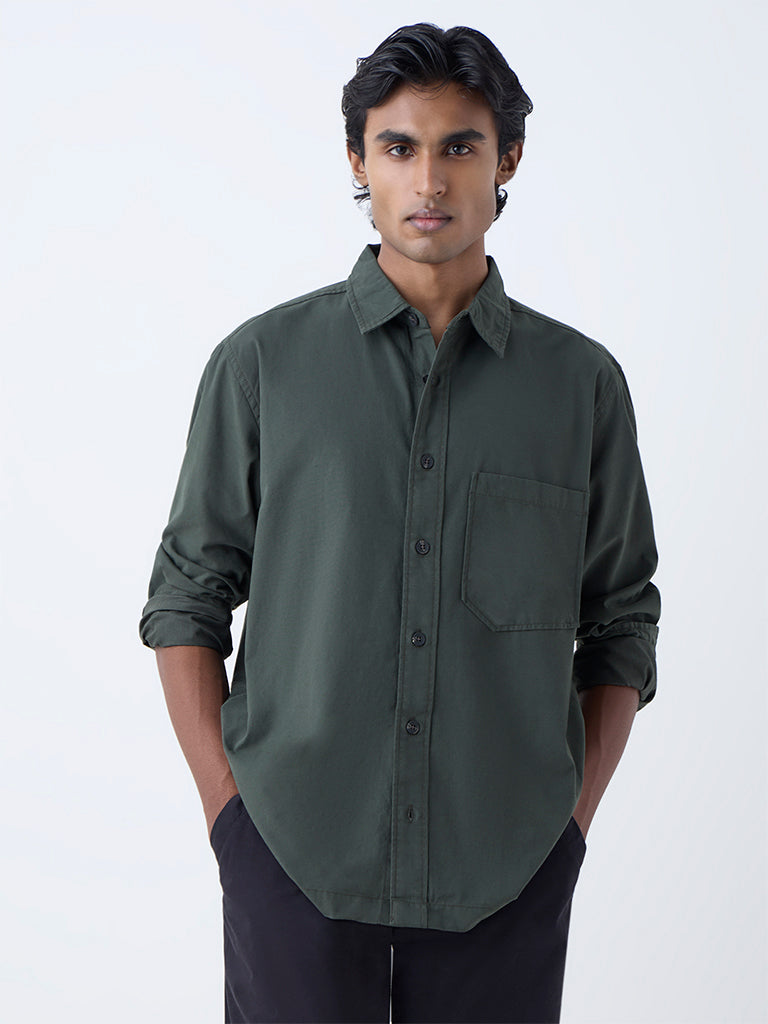 WES Casuals Olive Solid Relaxed-Fit Cotton Shirt