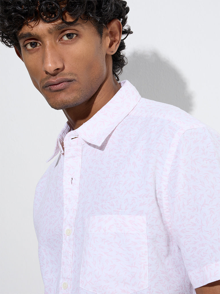 WES Casuals Pink Floral Relaxed-Fit Cotton-Blend Shirt