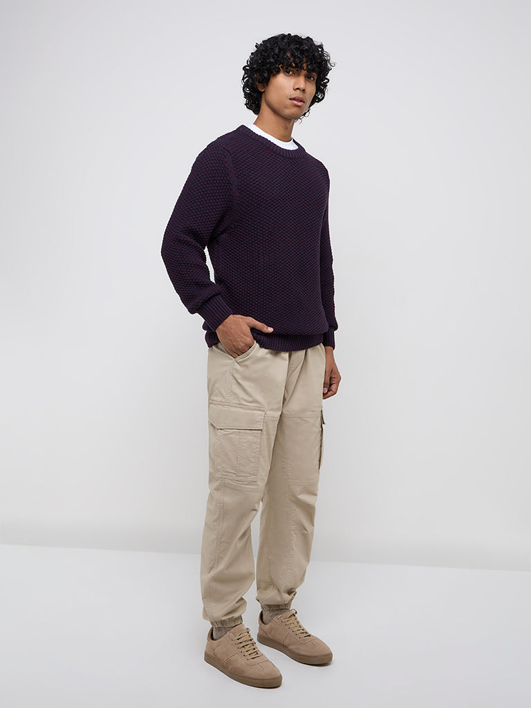 WES Casuals Purple Knitted Slim-Fit Cotton-Blend Sweater