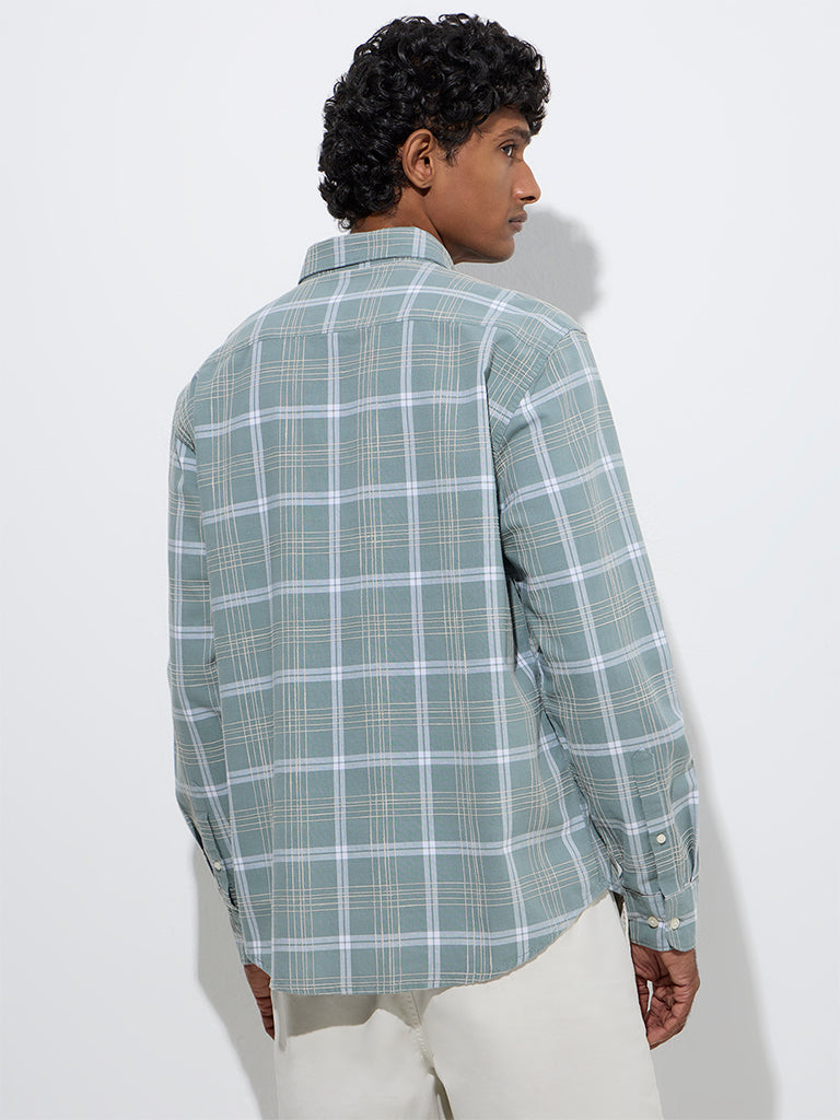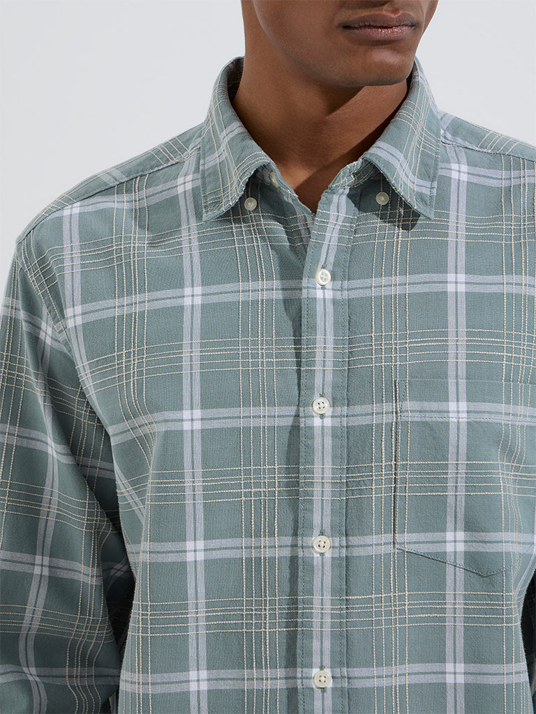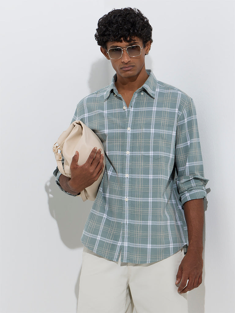 WES Casuals Sage Checks Design Relaxed-Fit Cotton Shirt