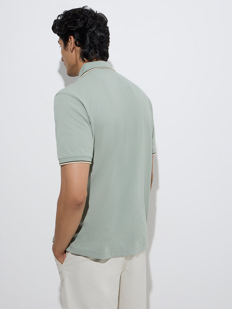 Tailored from a cotton-blend fabric for lightweight comfort. this sage polo t-shirt from WES Casuals features a polo neck collar and half sleeves. The relaxed silhouette ensures ease of movement.