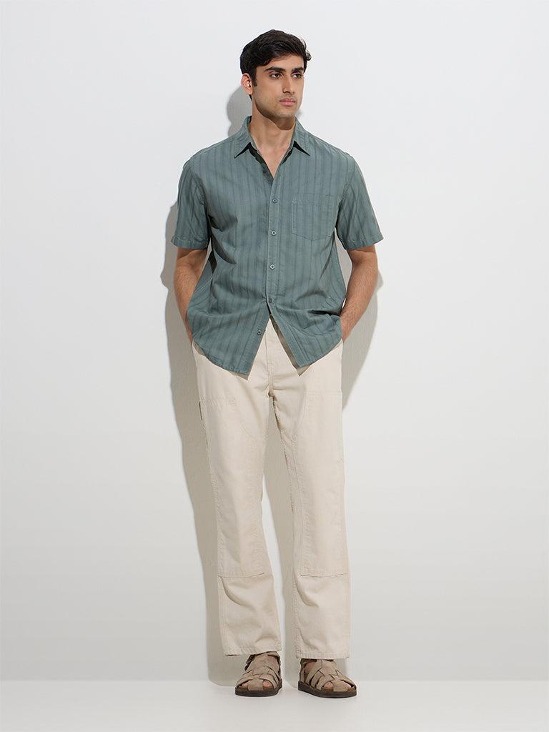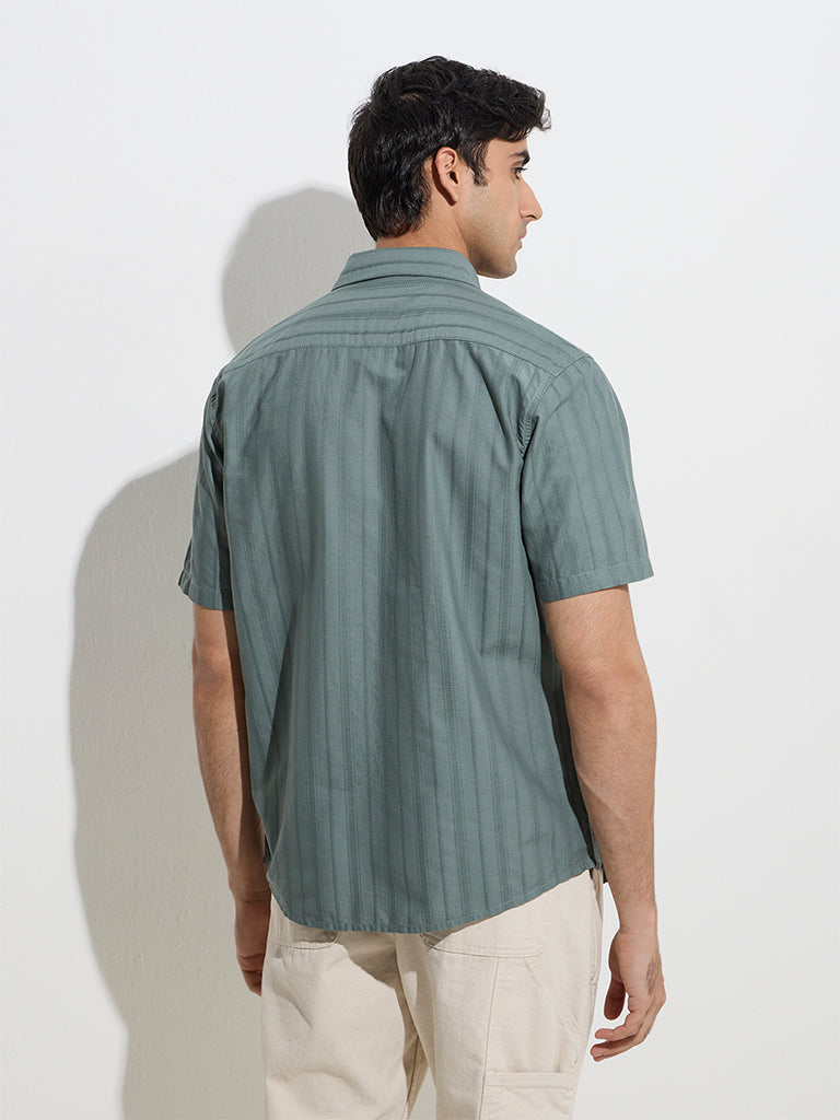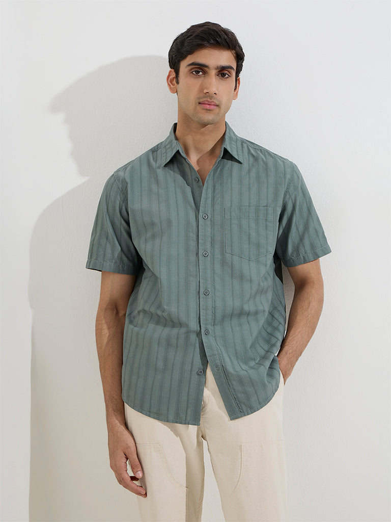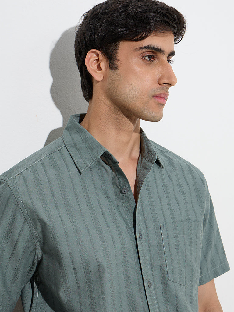 WES Casuals Sage Self-Striped Relaxed-Fit Cotton Shirt
