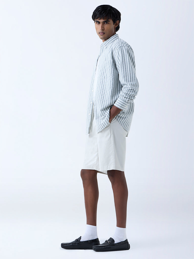 WES Casuals Sage Striped Relaxed-Fit Cotton Shirt