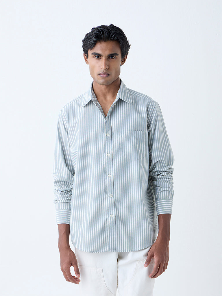 WES Casuals Sage Striped Relaxed-Fit Cotton Shirt