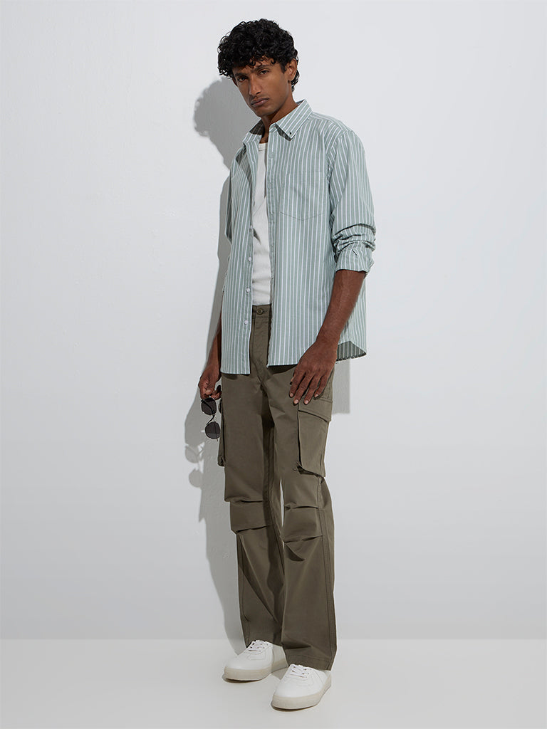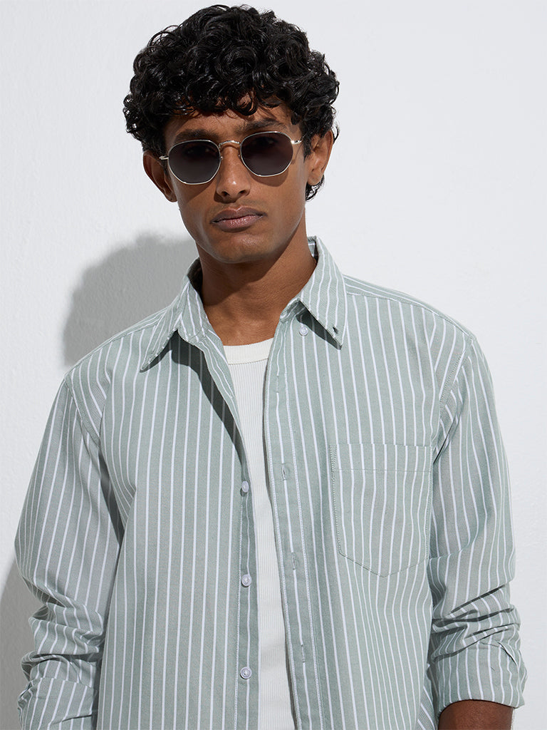 WES Casuals Sage Striped Relaxed-Fit Cotton Shirt