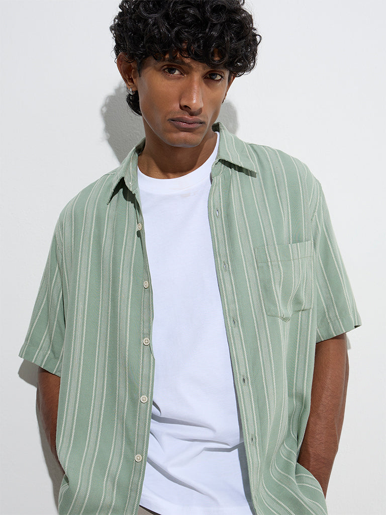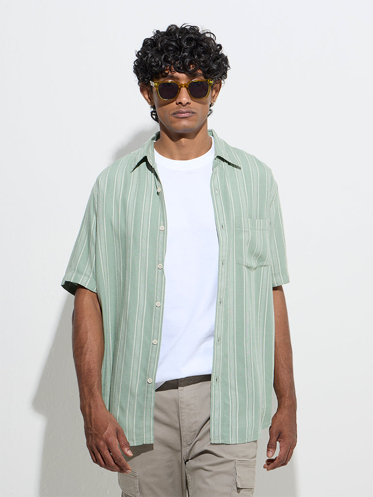 WES Casuals Sage Striped Relaxed-Fit Shirt