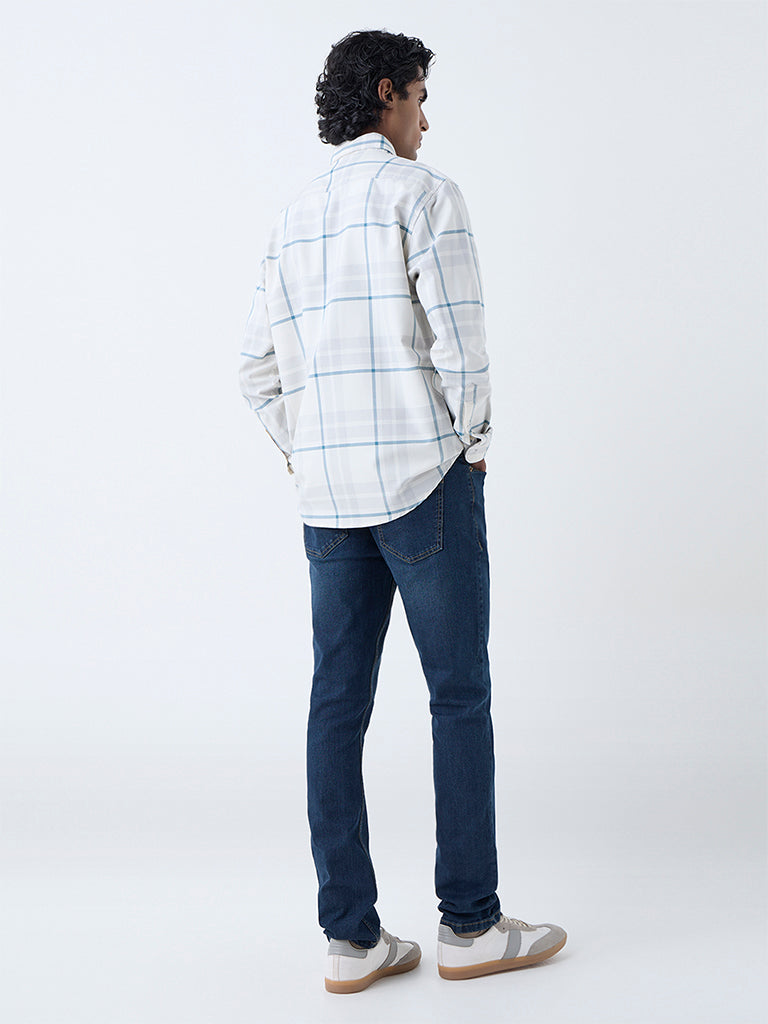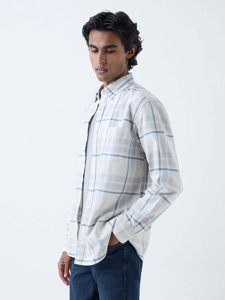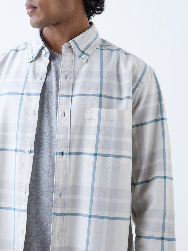 WES Casuals Teal Checkered Relaxed-Fit Cotton Shirt