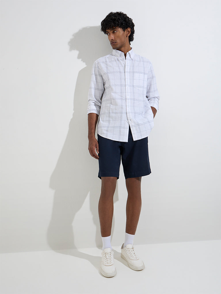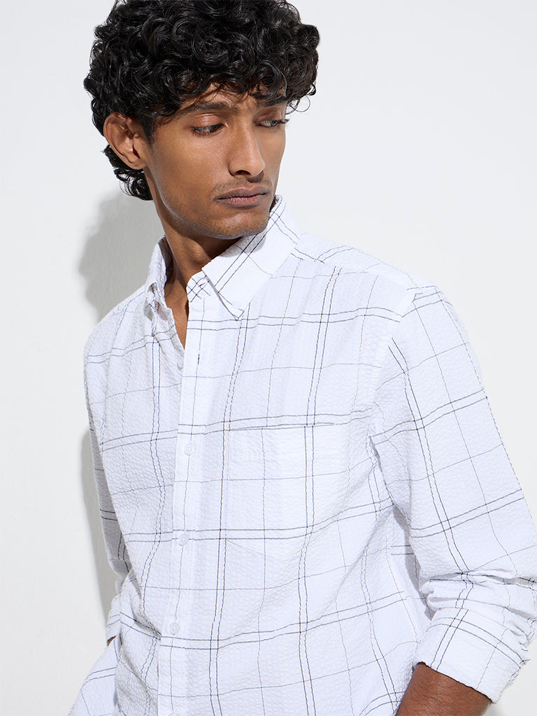 WES Casuals White Checkered Relaxed-Fit Cotton-Blend Shirt