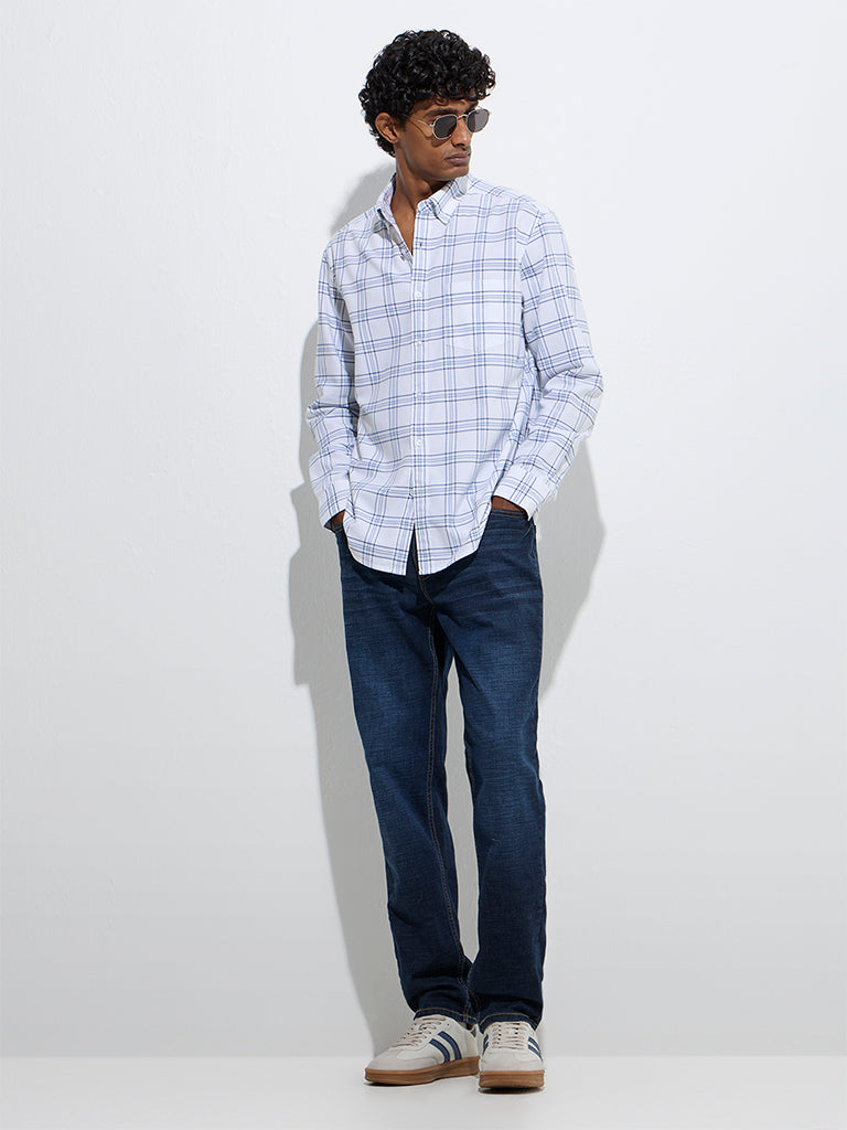 WES Casuals White Checks Design Relaxed-Fit Cotton Shirt