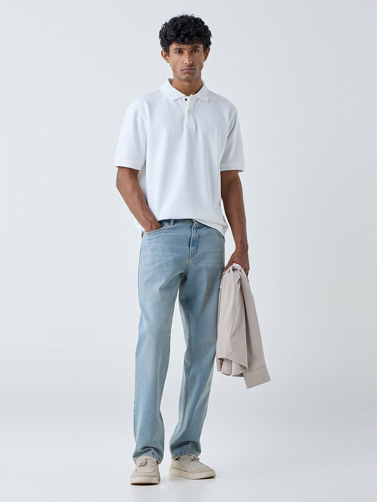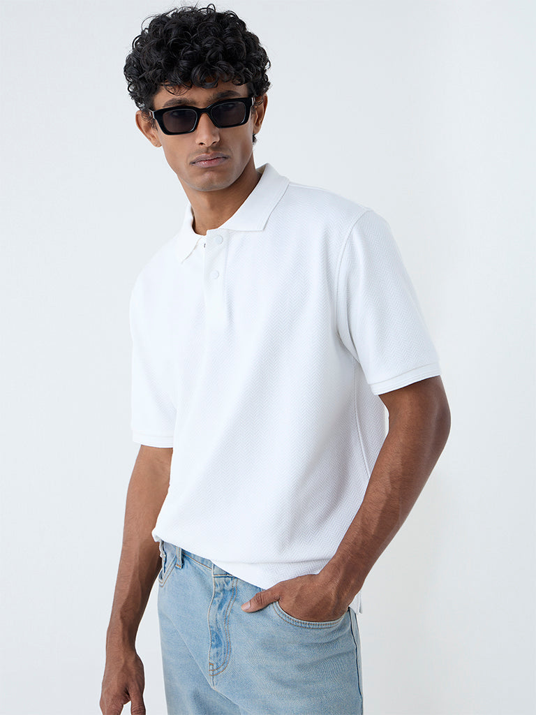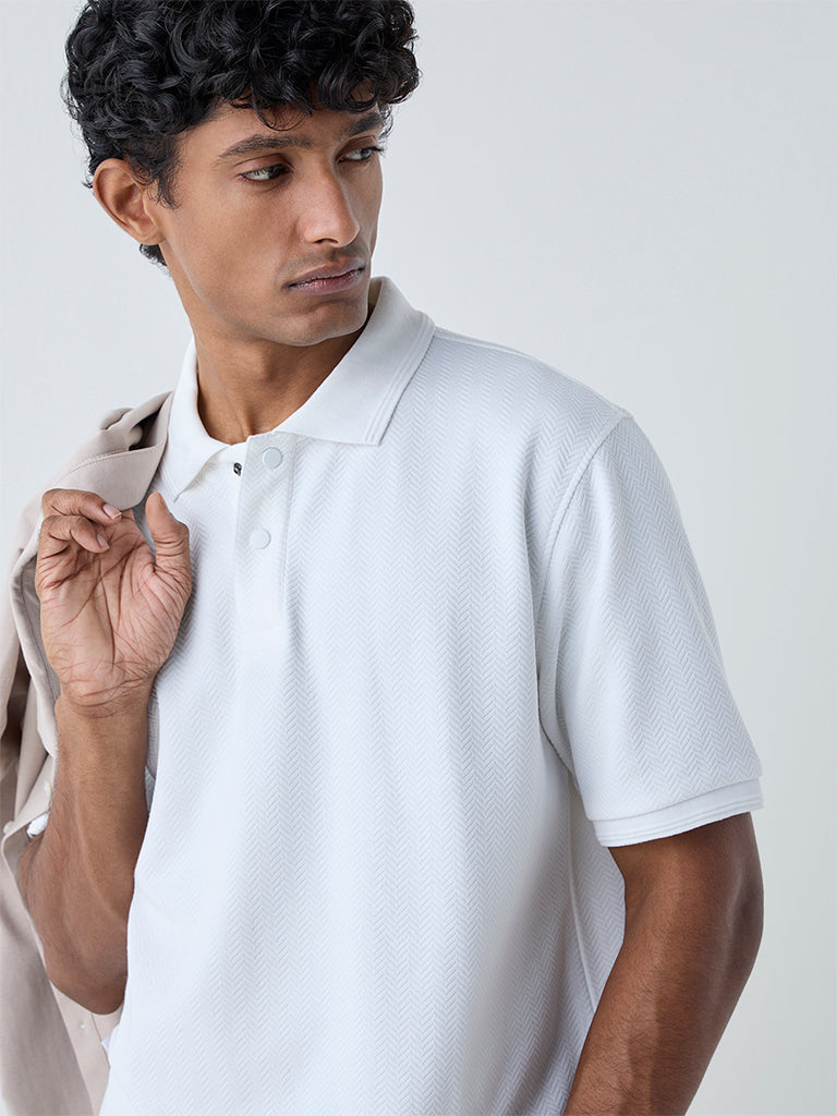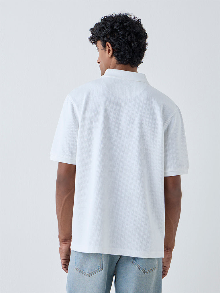 WES Casuals White Relaxed-Fit Cotton-Blend Polo T-Shirt