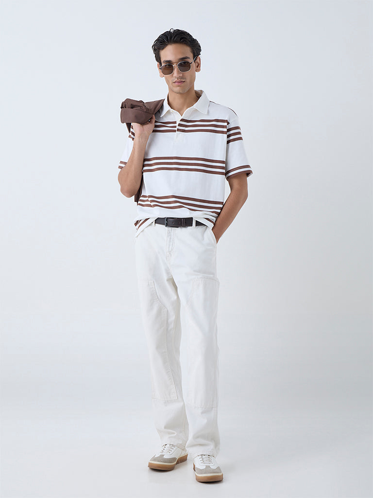WES Casuals White Relaxed-Fit Cotton-Blend Polo T-Shirt