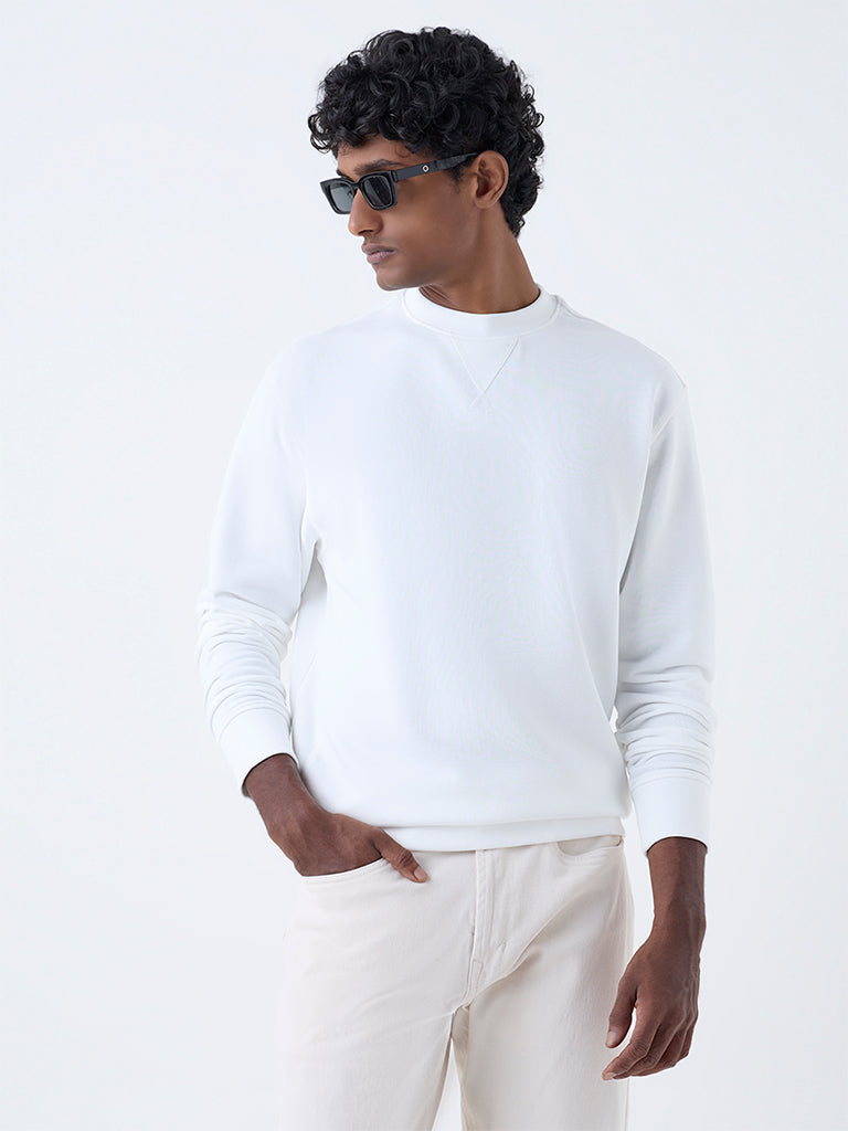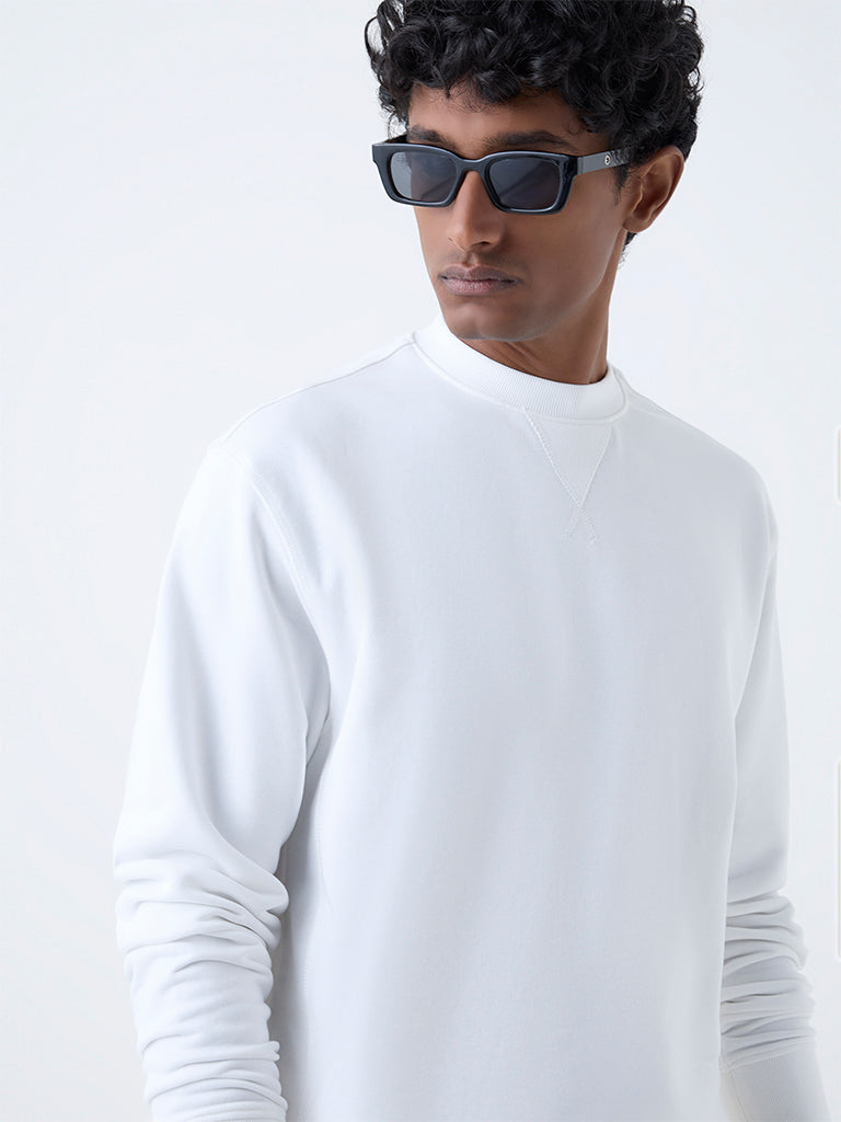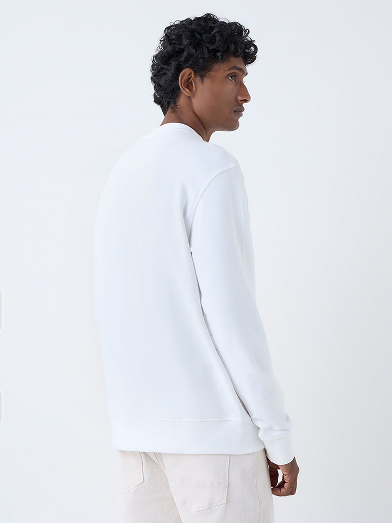 WES Casuals White Relaxed-Fit Cotton-Blend Sweatshirt