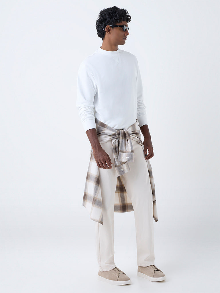 This white sweatshirt from WES Casuals is designed in a relaxed fit for everyday comfort. Featuring a classic crew neck and full sleeves. it’s a versatile essential that pairs easily with both casual and laid-back looks.