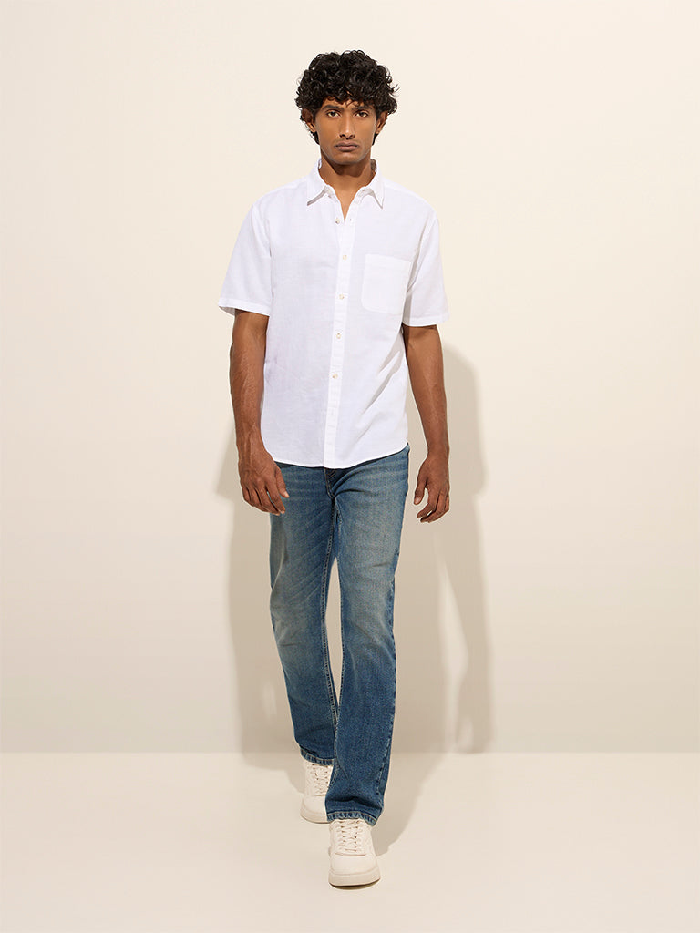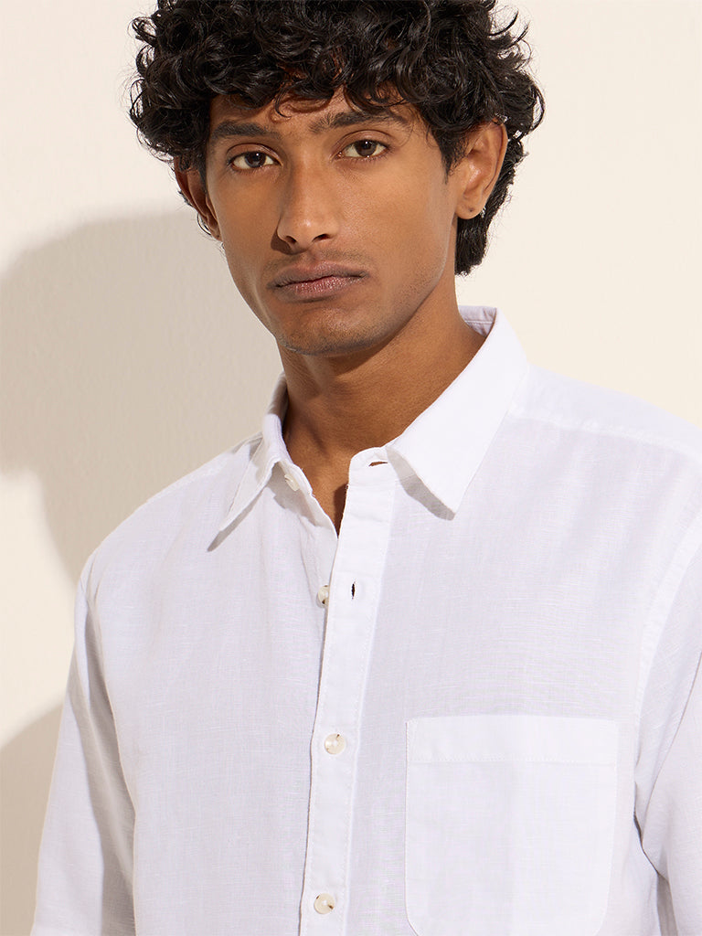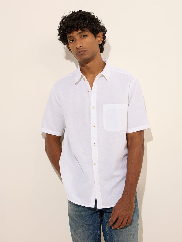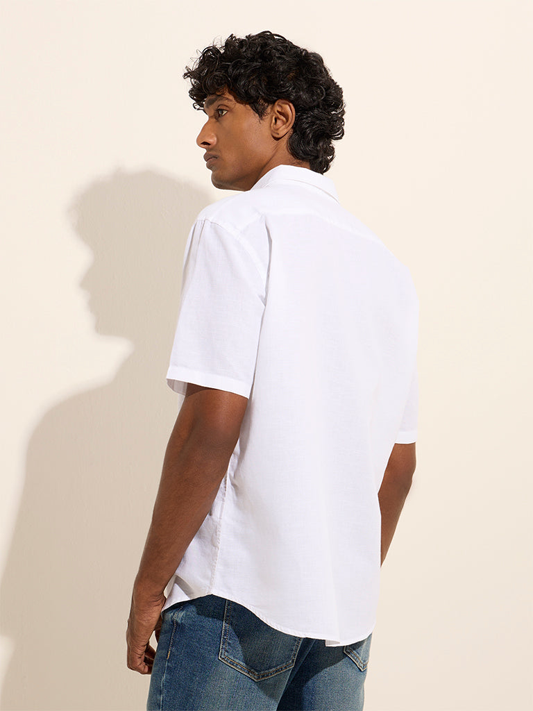 WES Casuals White Relaxed-Fit Linen-Blend Shirt