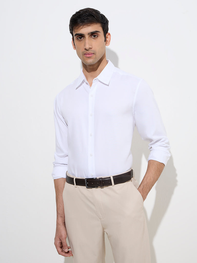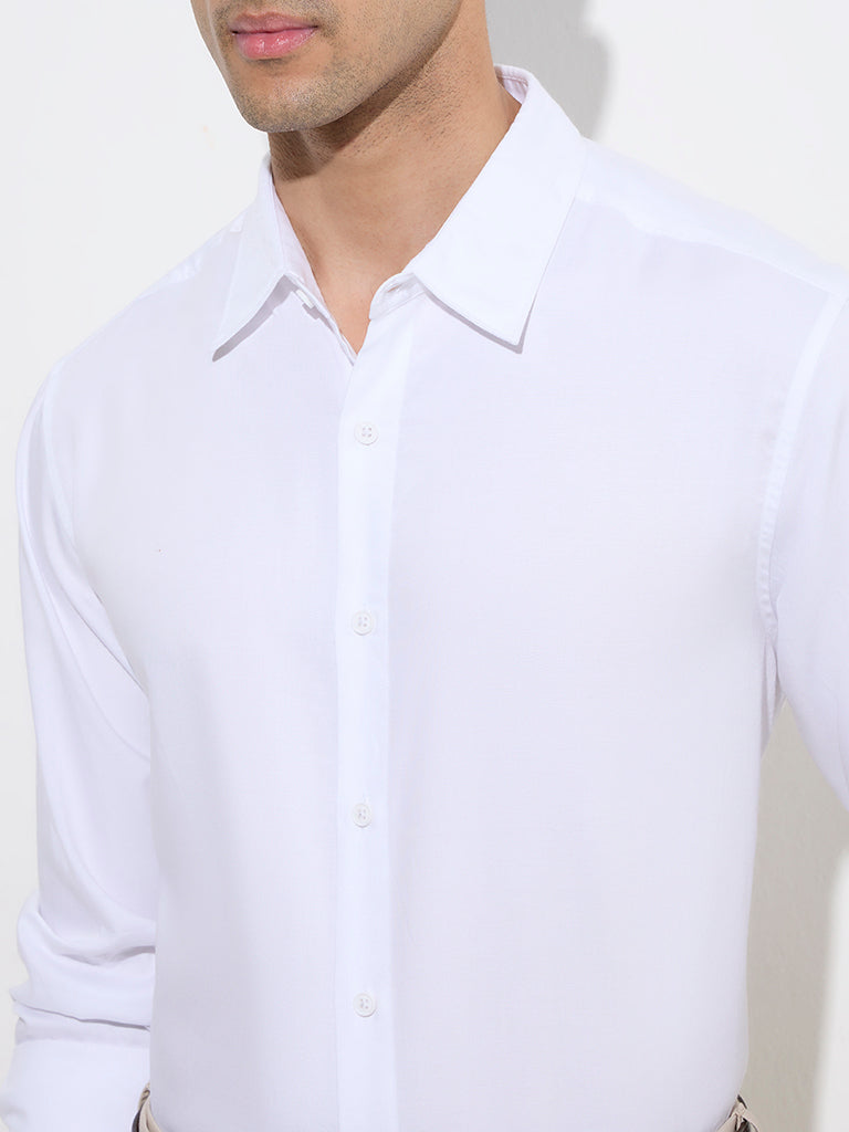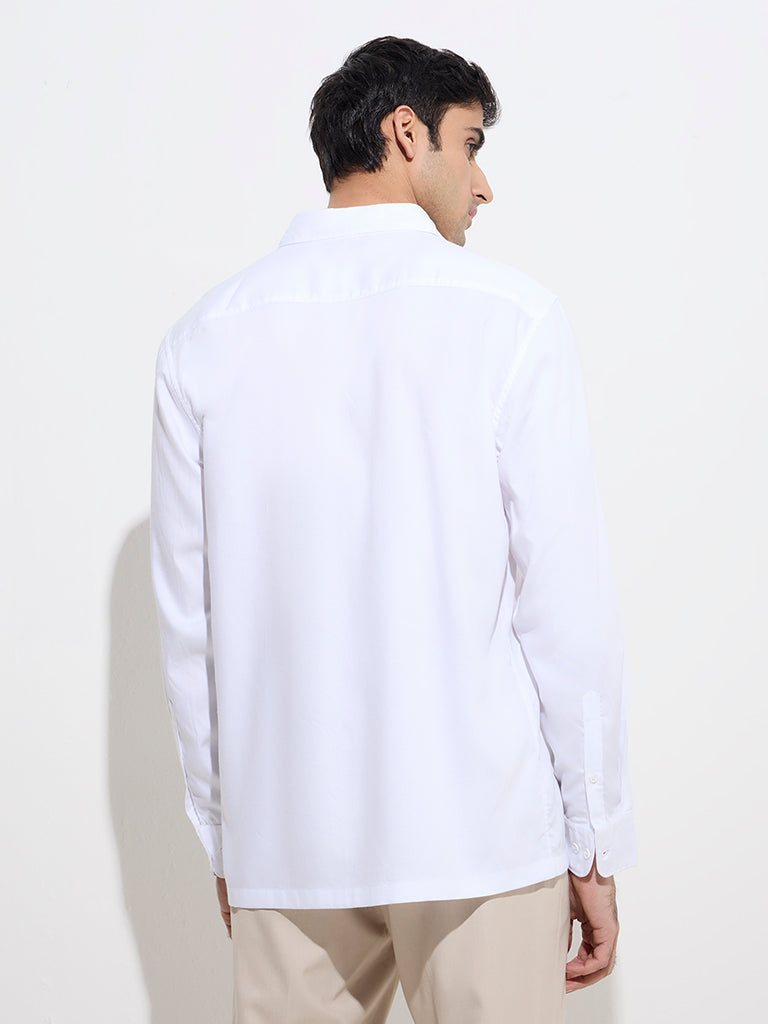 WES Casuals launches this white relaxed-fit shirt. crafted from quality fabric for a crisp and comfortable feel. Designed with a spread collar. button-down front. and full sleeves. it’s a versatile essential for effortless styling.