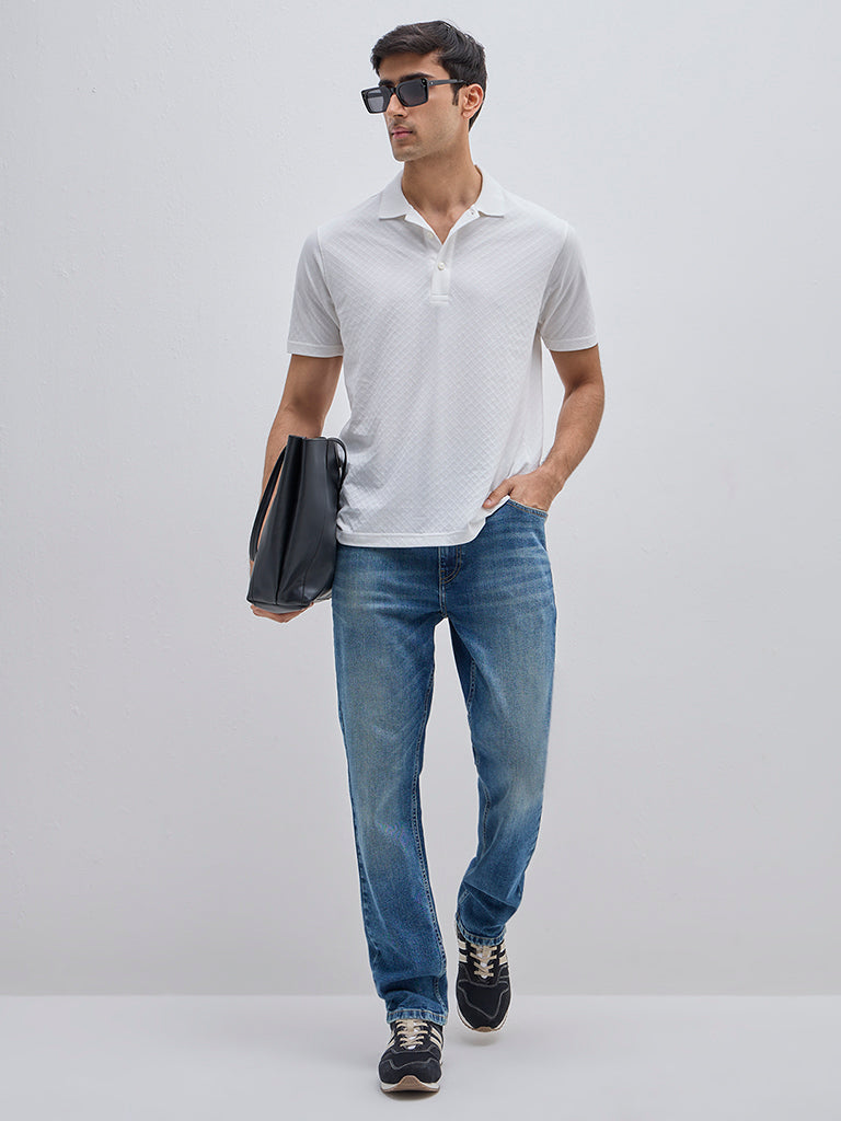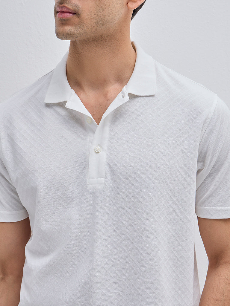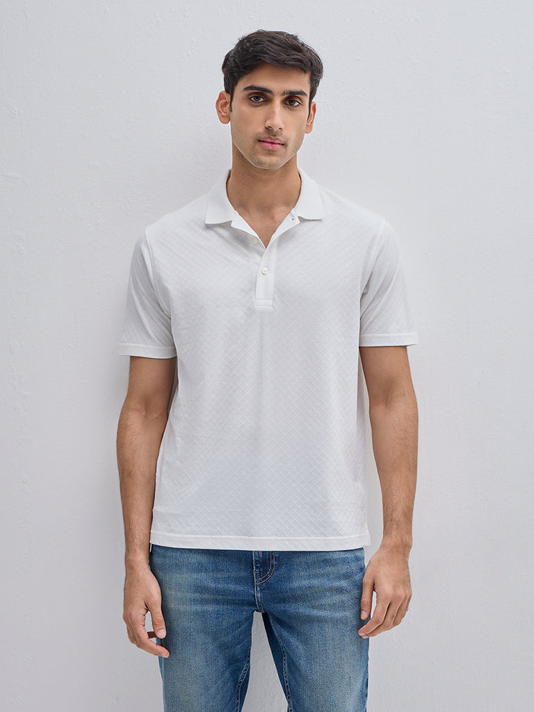 WES Casuals White Self Relaxed-Fit Cotton Polo T-Shirt