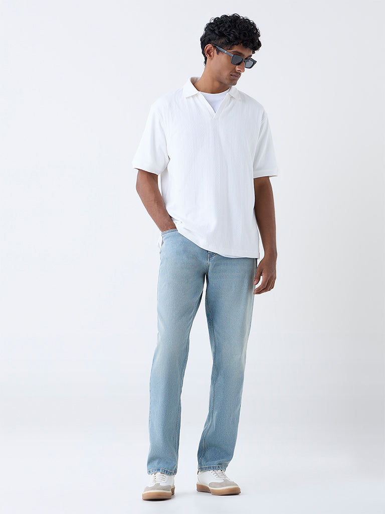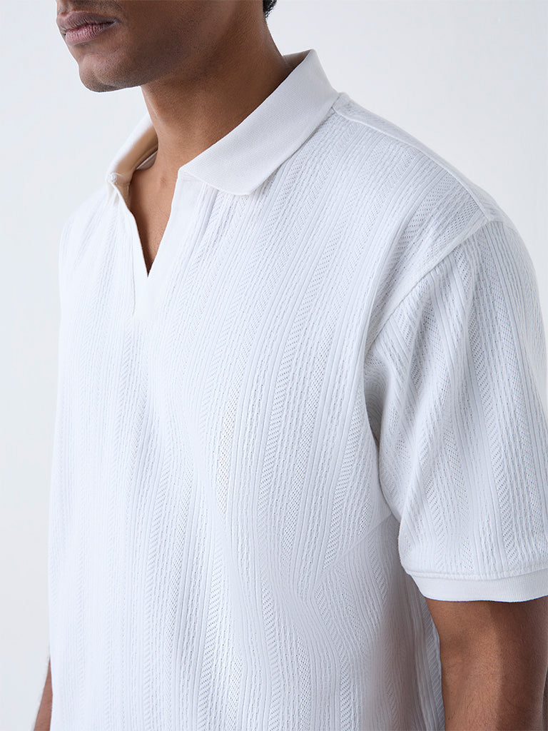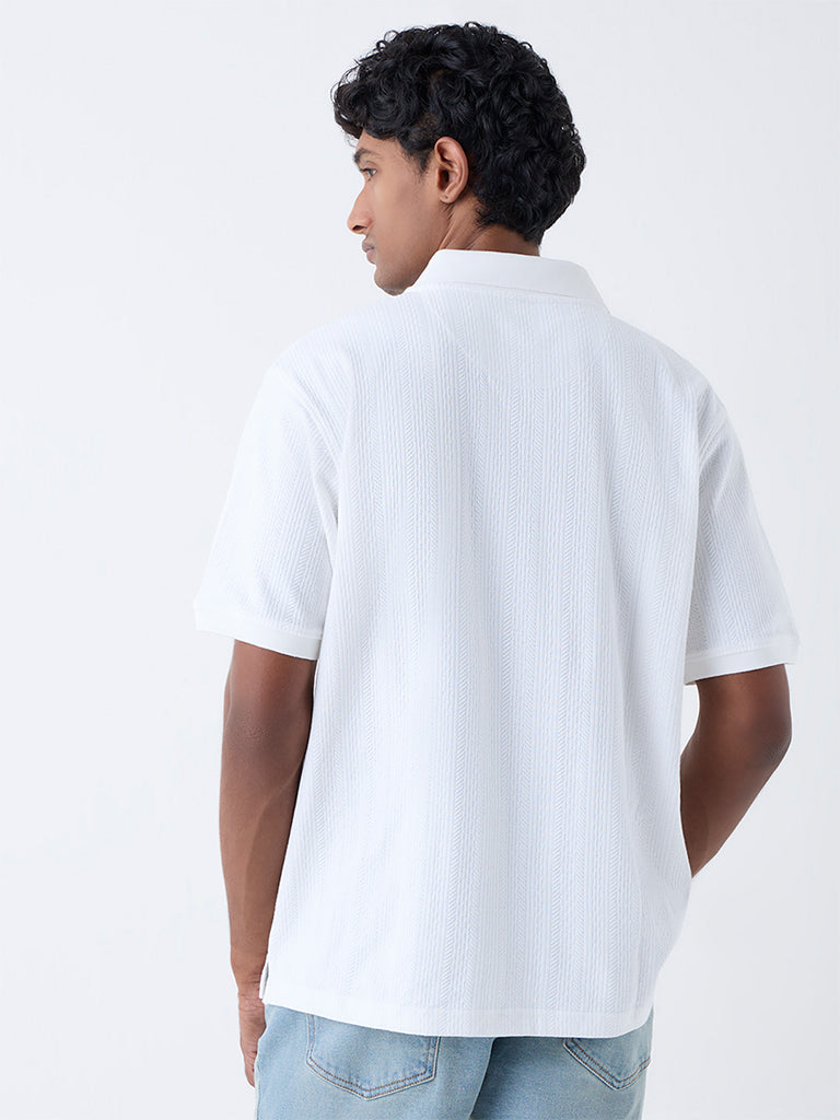 WES Casuals White Textured Relaxed-Fit Polo T-Shirt