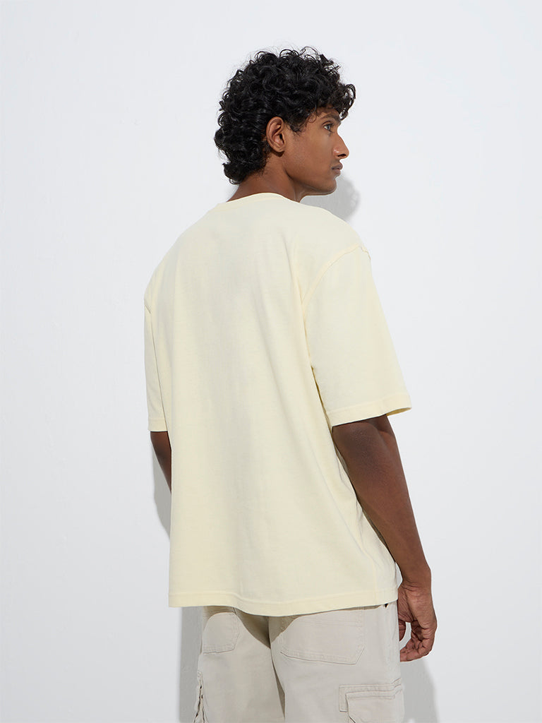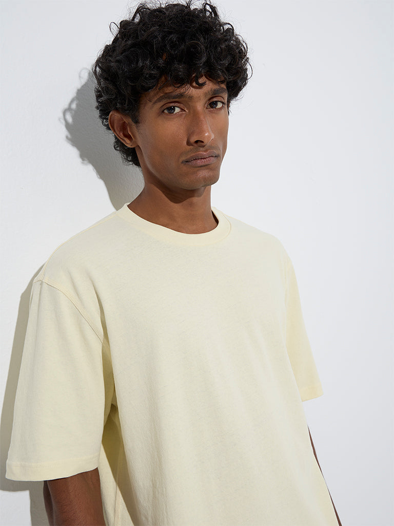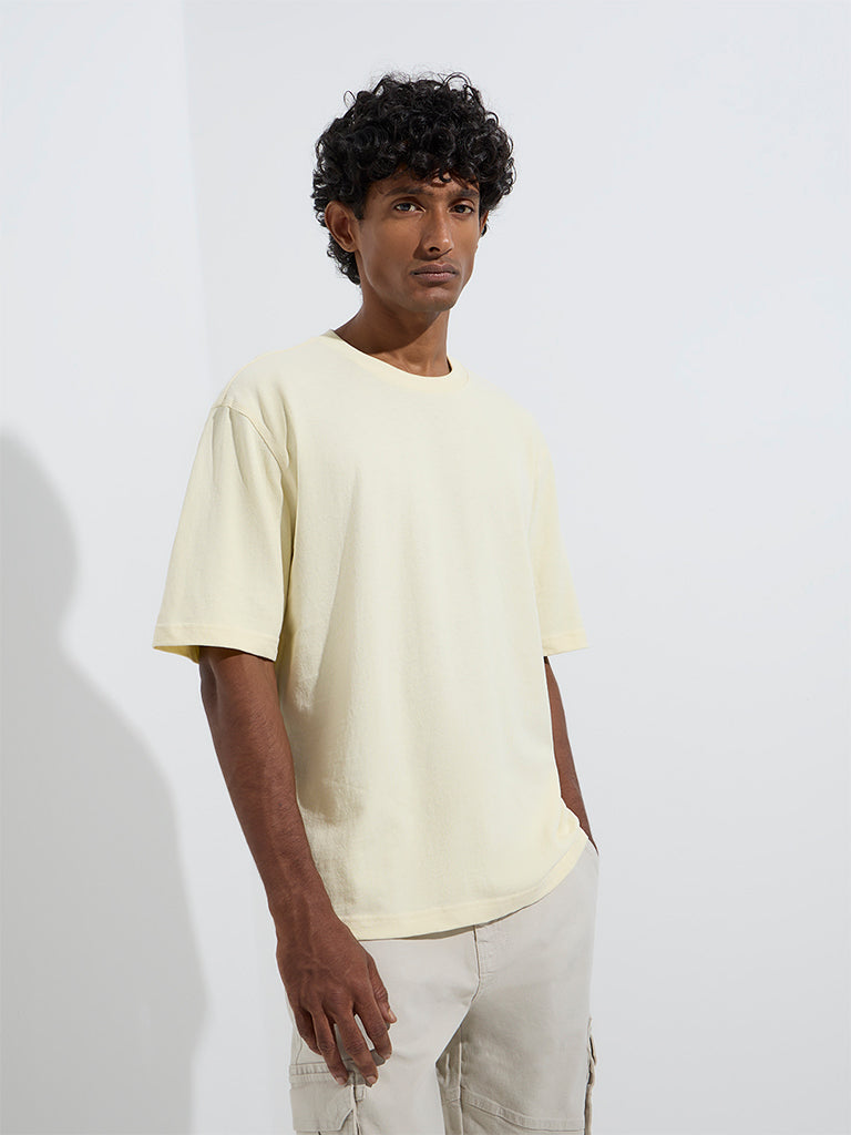 WES Casuals Yellow Solid Relaxed-Fit Cotton T-Shirt