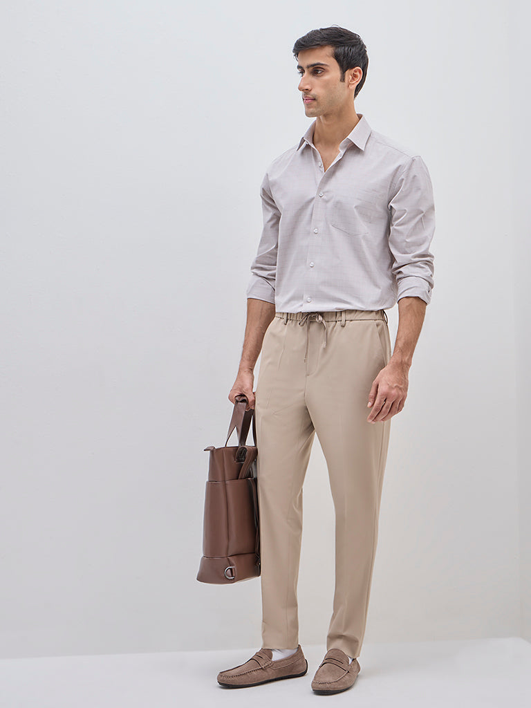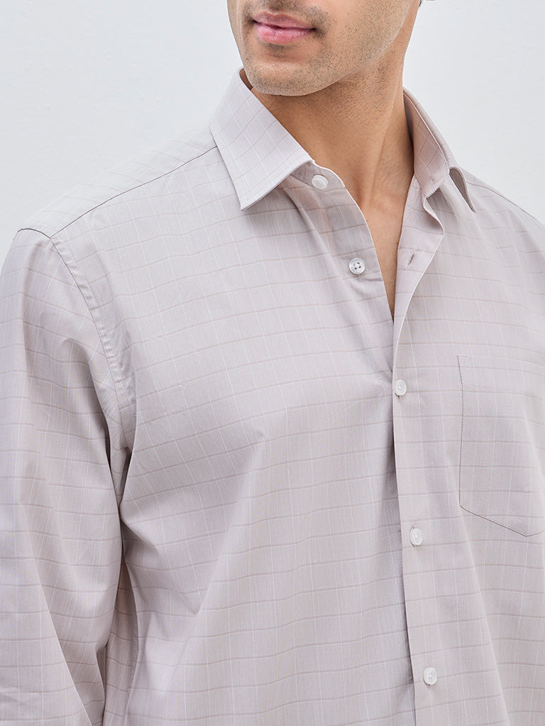 WES Formals Beige Checks Printed Relaxed-Fit Cotton Shirt
