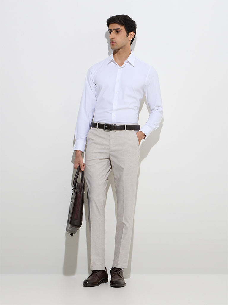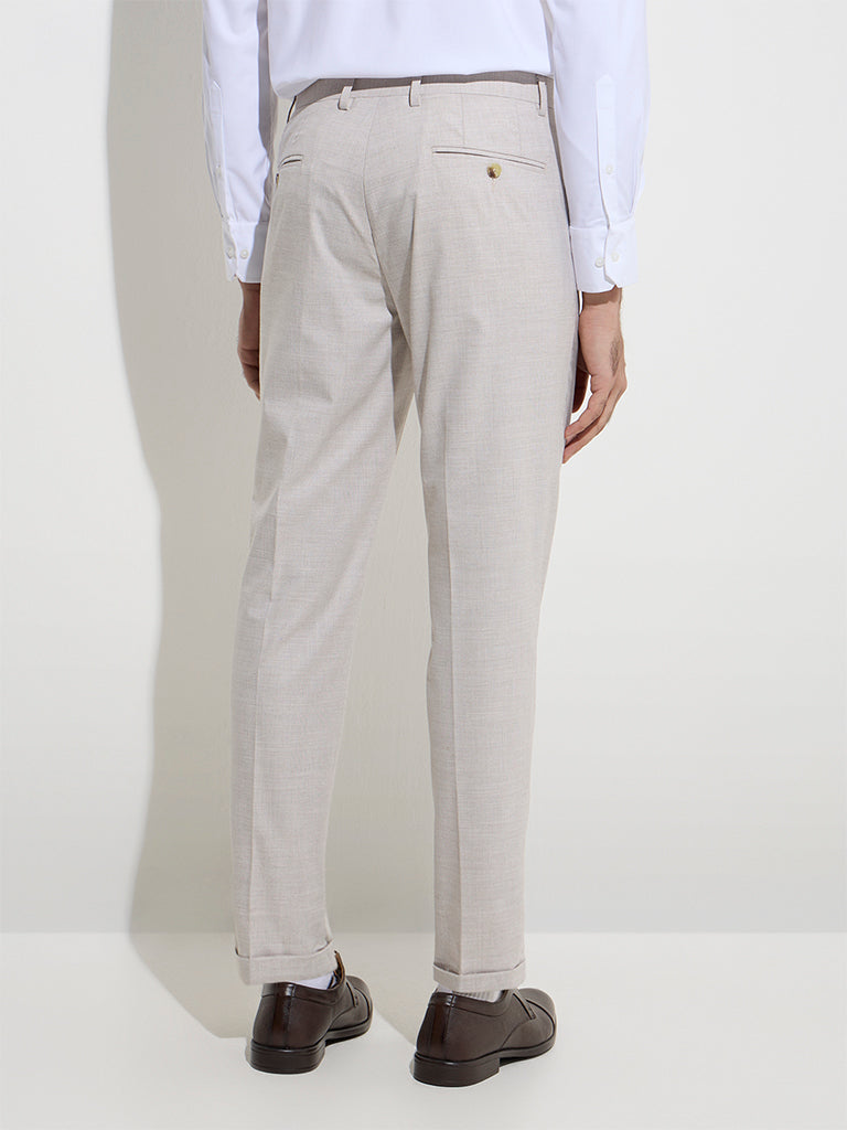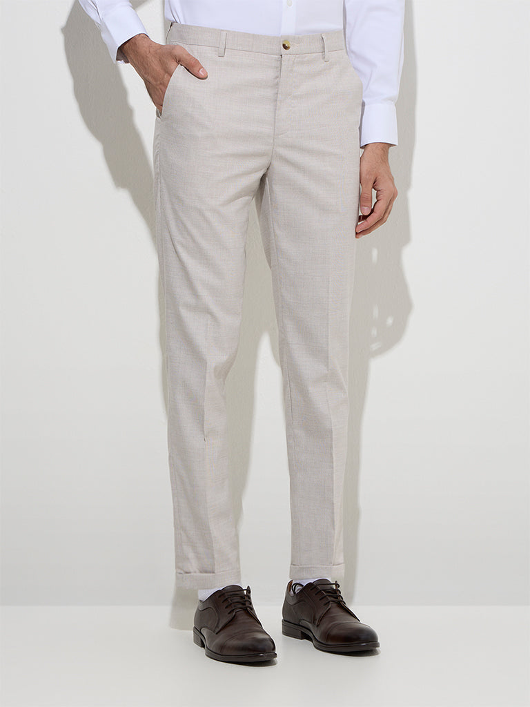 WES Formals Beige Checks Relaxed-Fit Mid-Rise Trousers