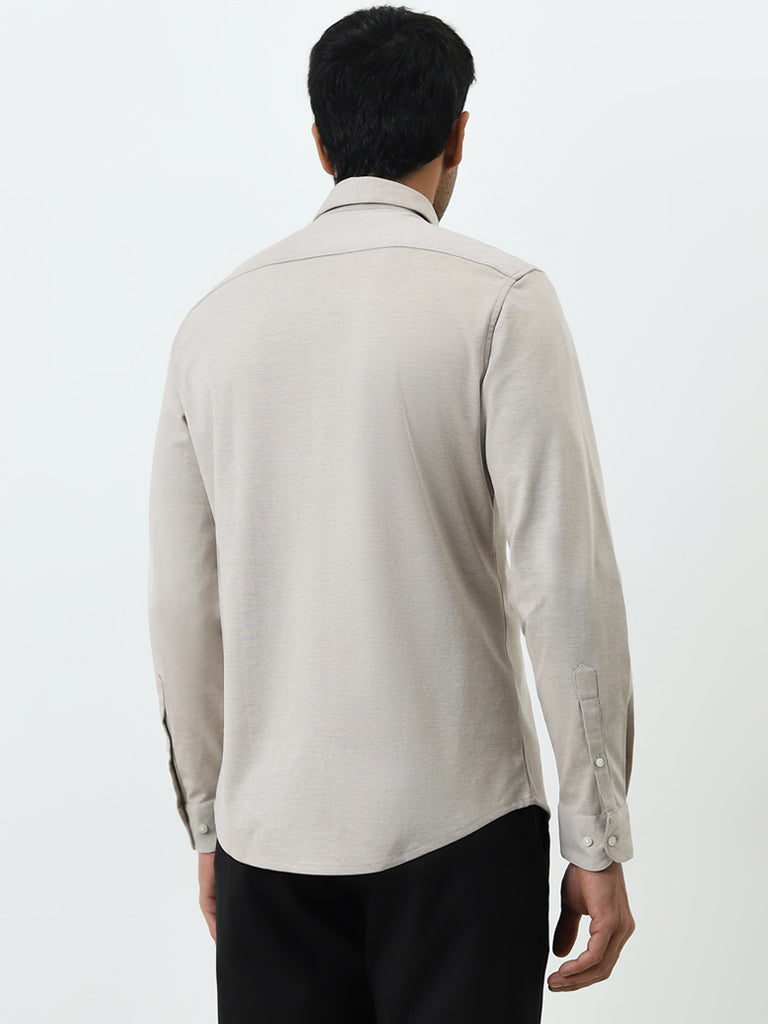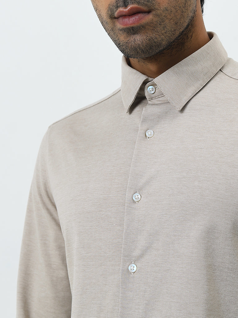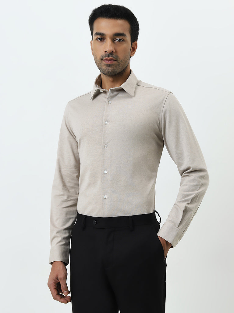 WES Formals Beige Slim-Fit Cotton-Blend Shirt