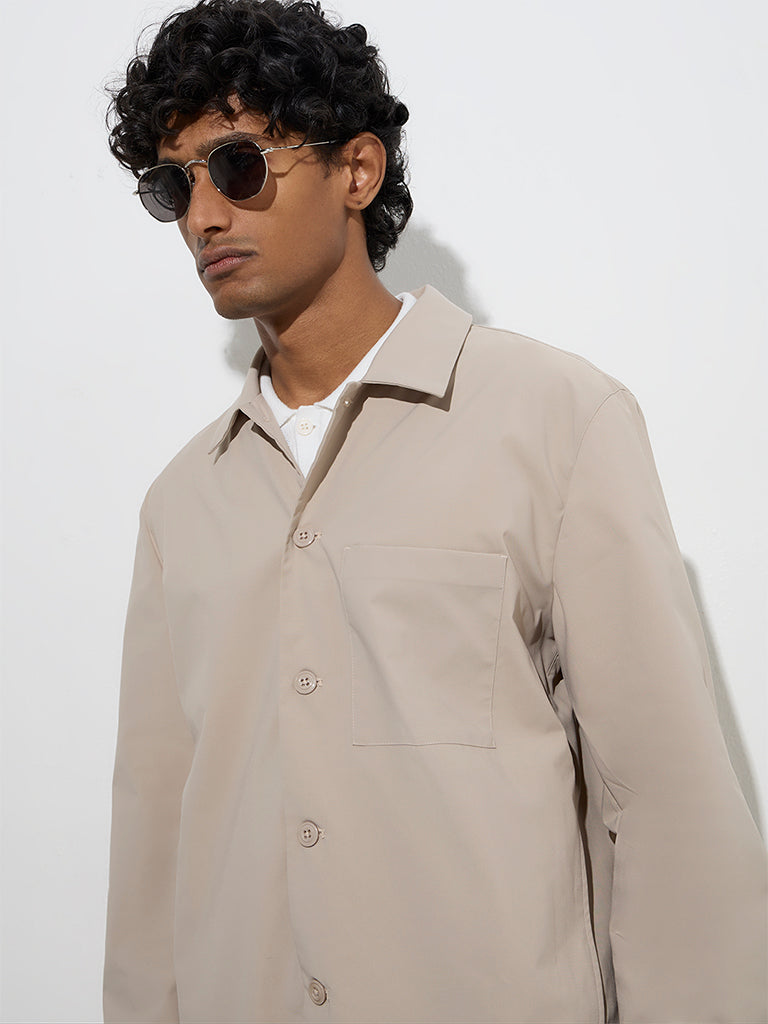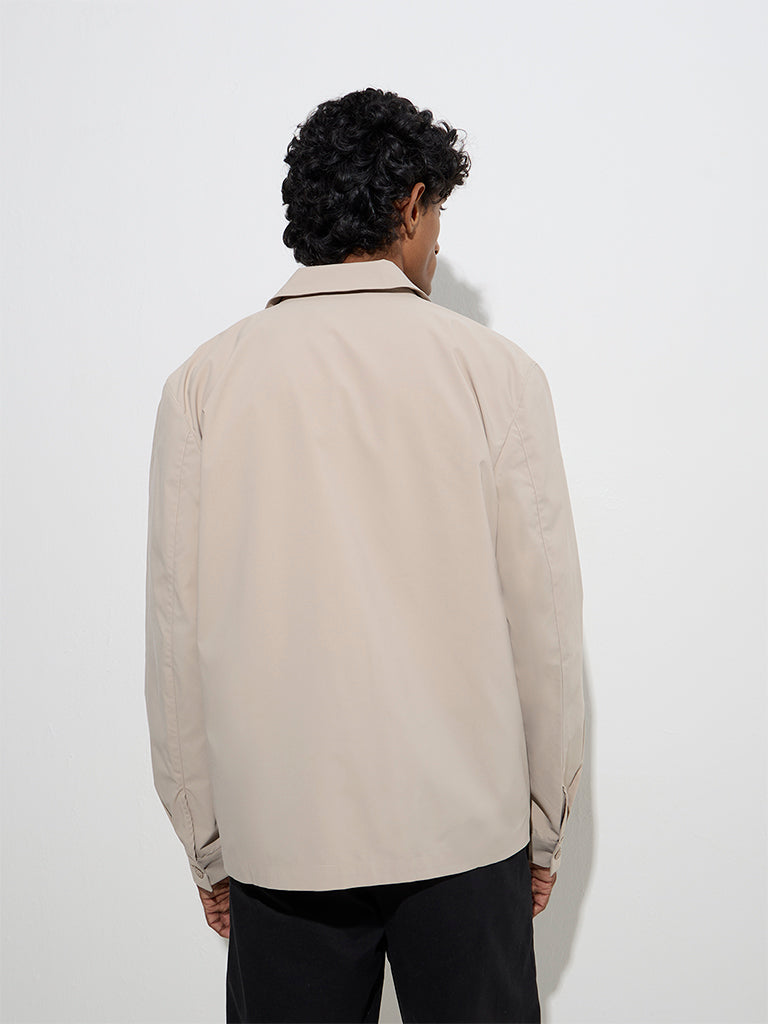 WES Formals Beige Solid Relaxed-Fit Jacket