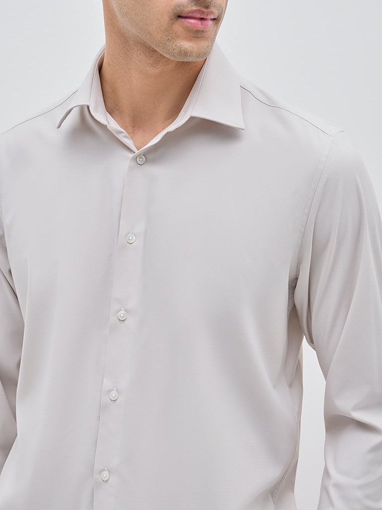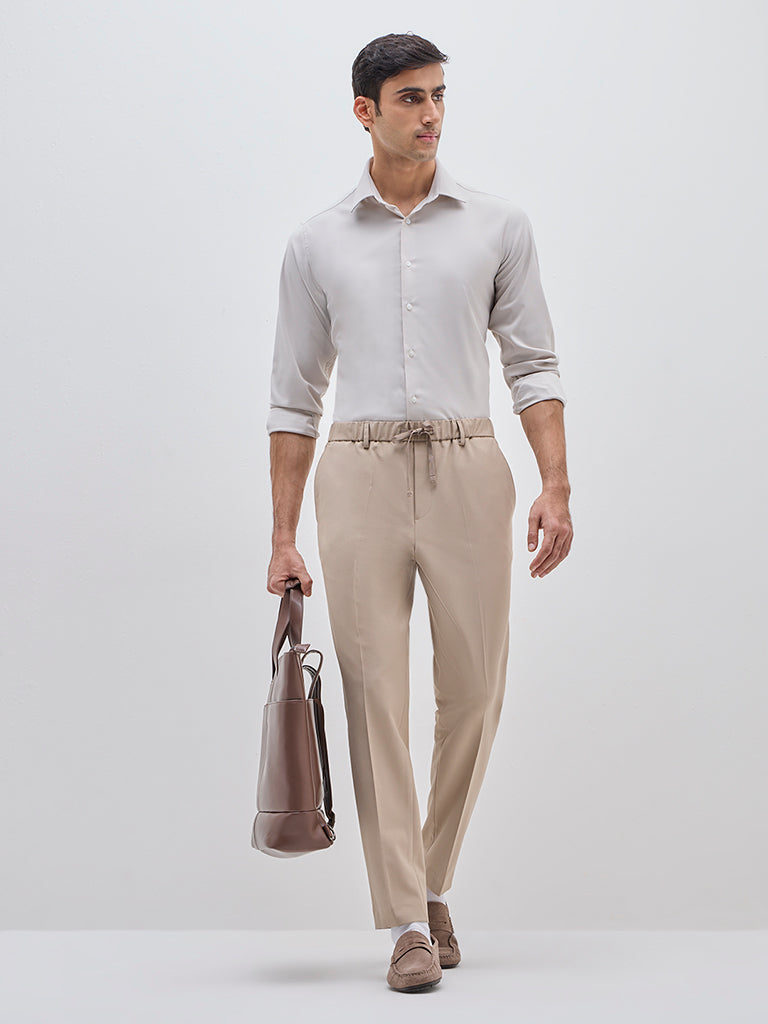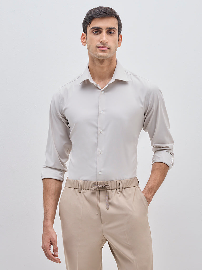 WES Formals Beige Solid Slim-Fit Shirt