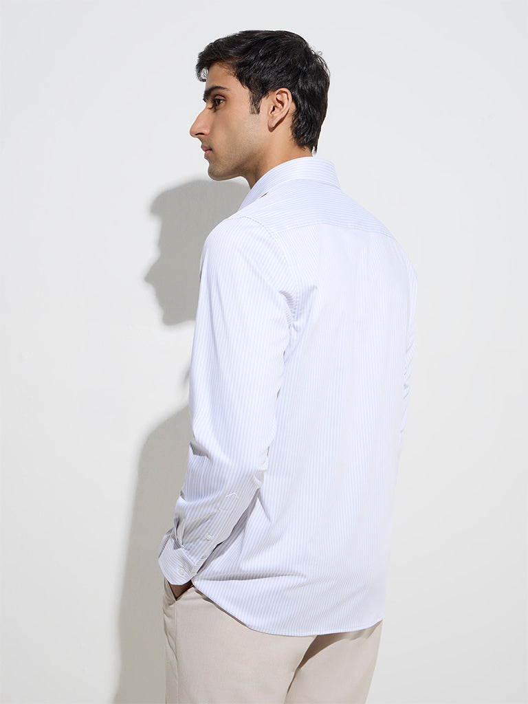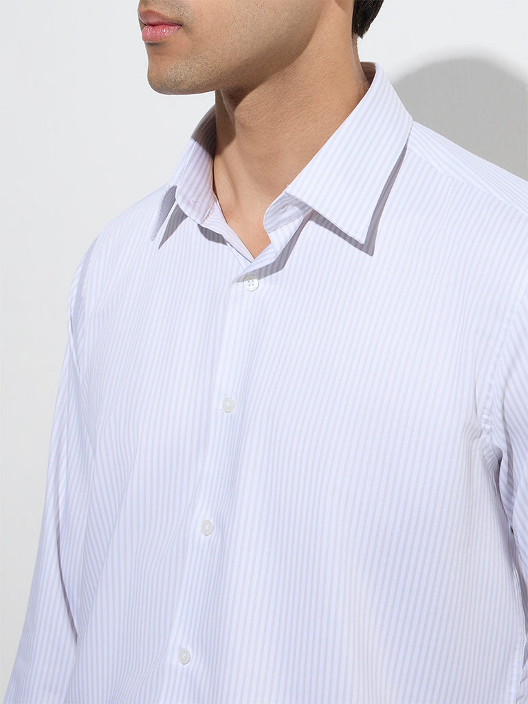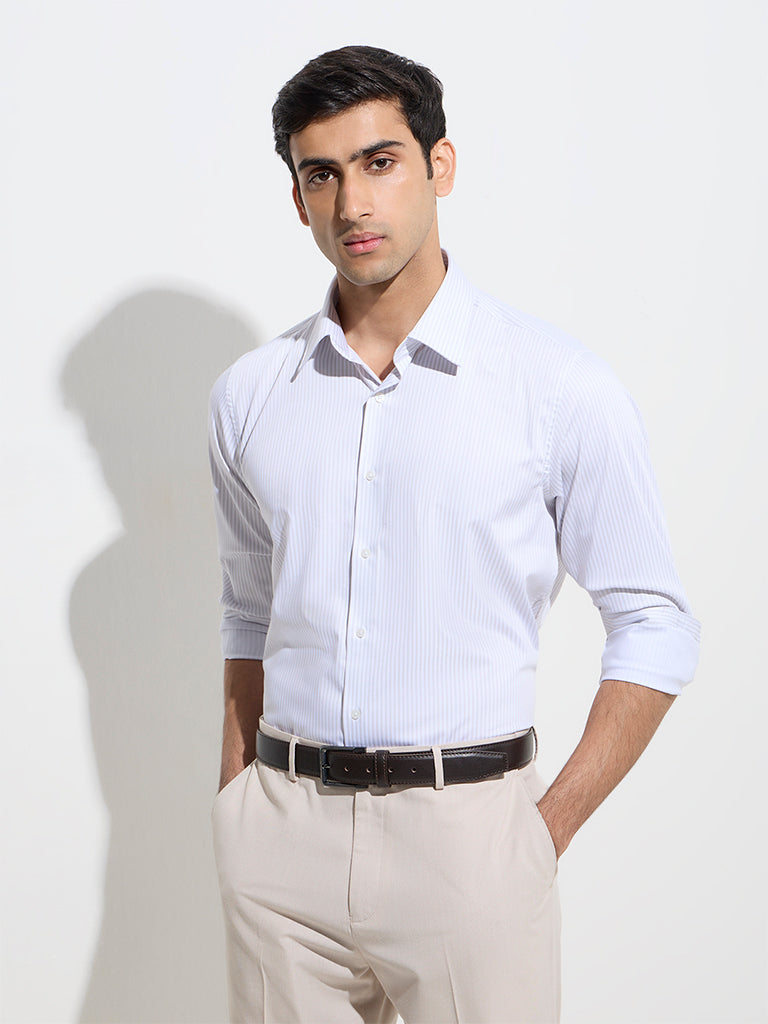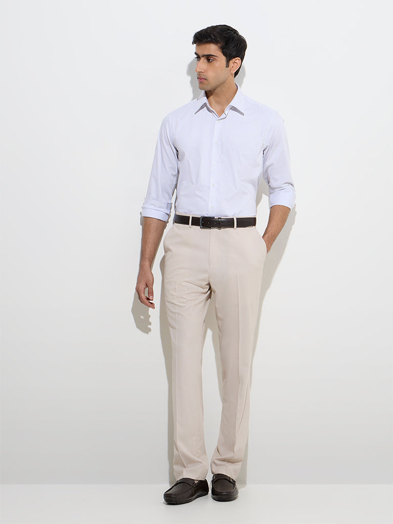 WES Formals Beige Stripe Patterned Slim-Fit Cotton Shirt