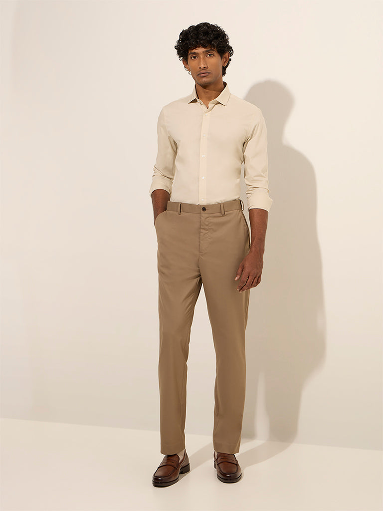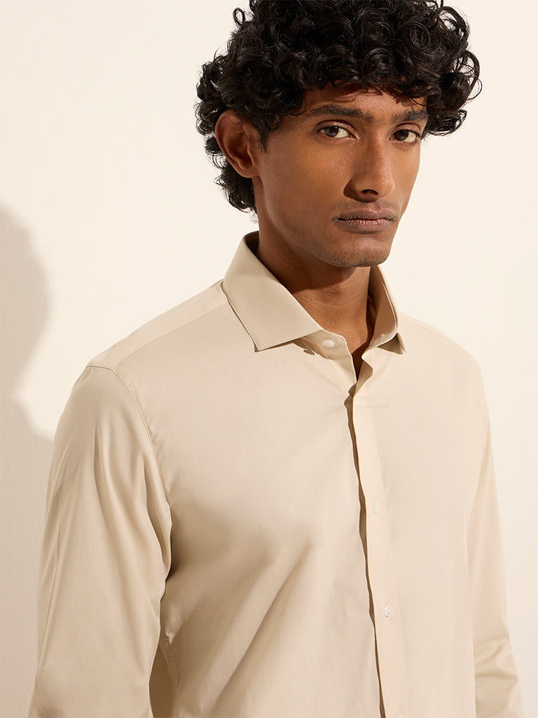 WES Formals Beige Ultra-Slim Fit Cotton-Blend Shirt