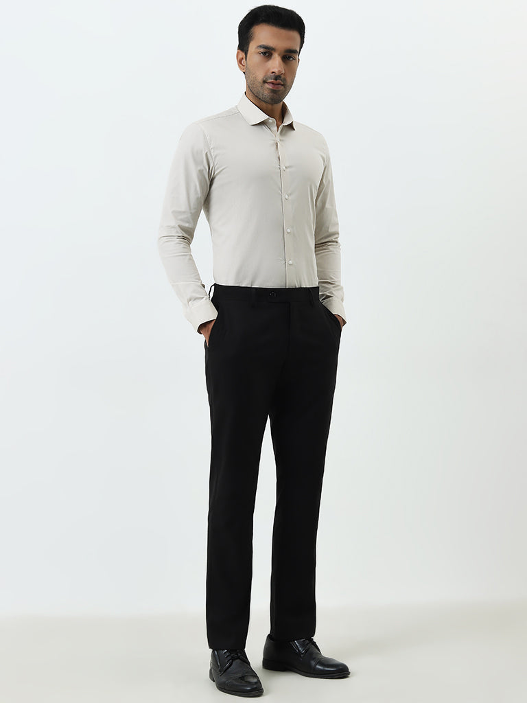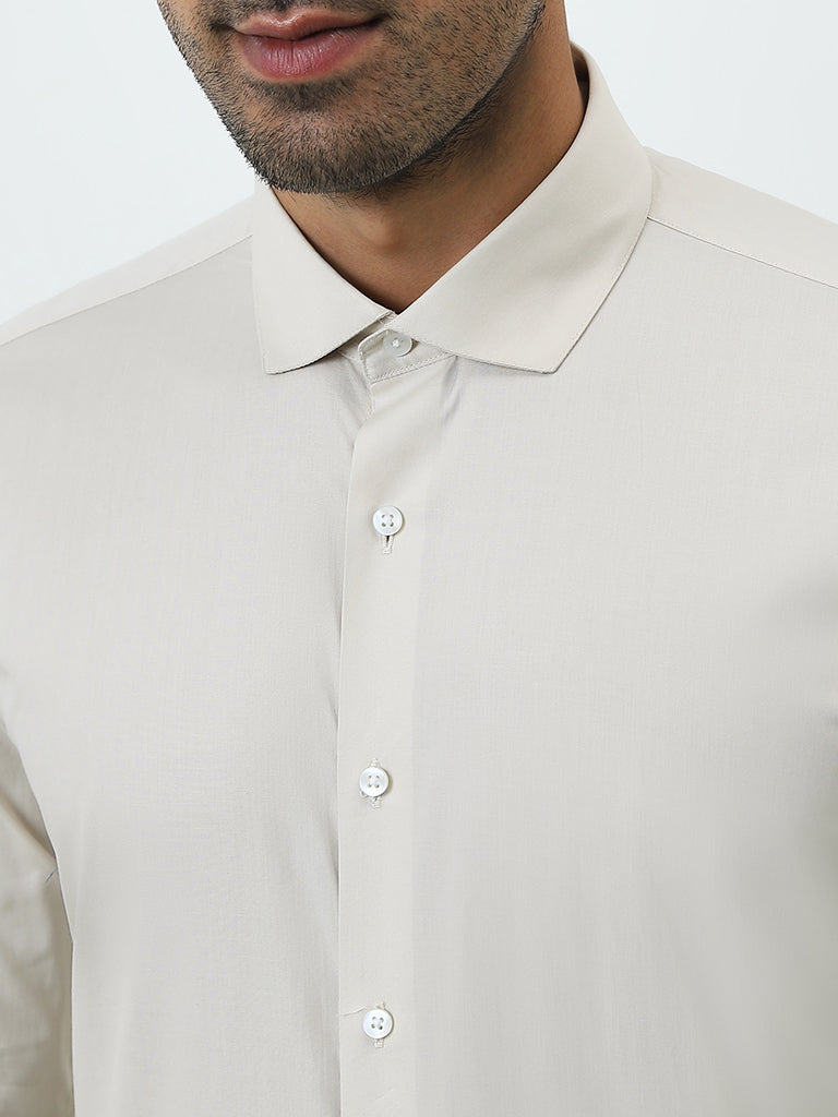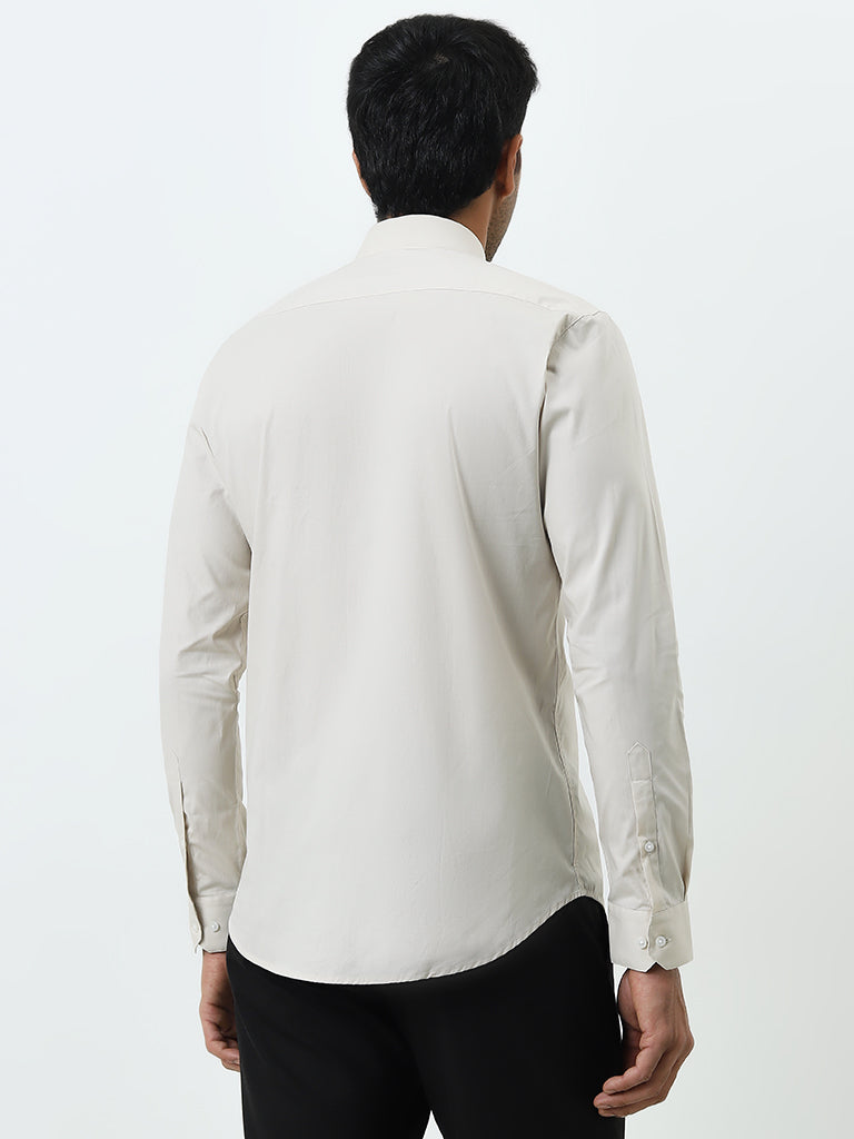 WES Formals Beige Ultra Slim-Fit Cotton-Blend Shirt