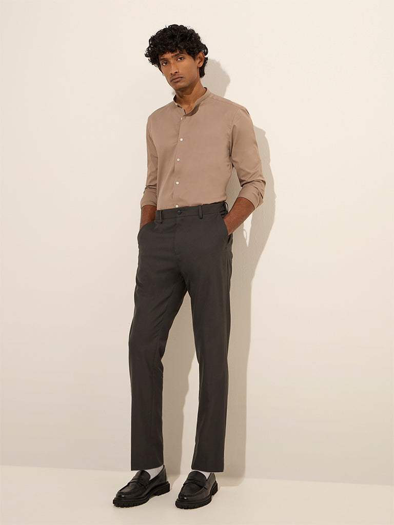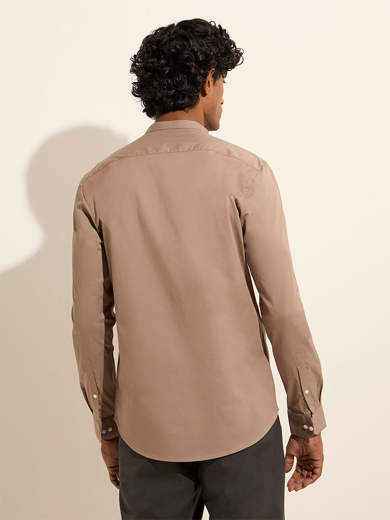 WES Formals Beige Ultra-Slim Fit Cotton-Blend Shirt