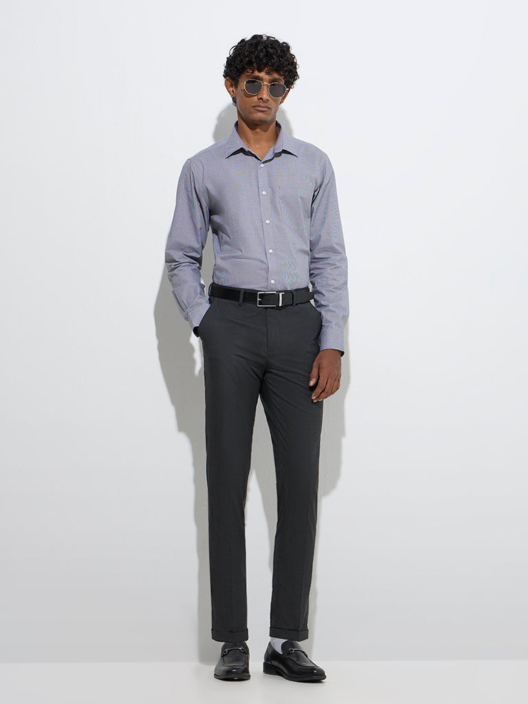 WES Formals Black Checkered Slim-Fit Cotton Shirt