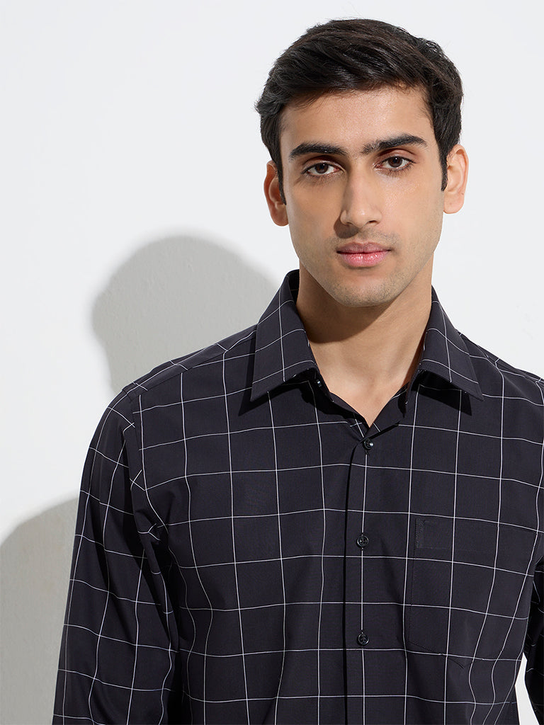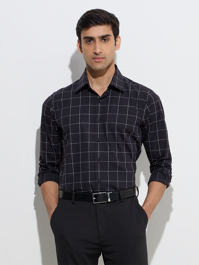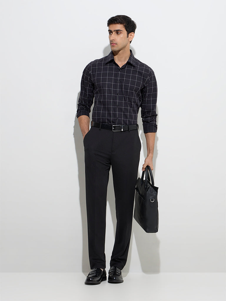 WES Formals Black Checkered Slim-Fit Cotton Shirt