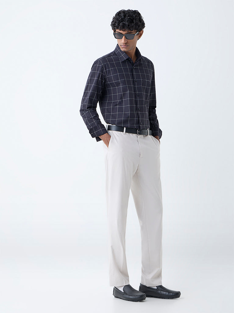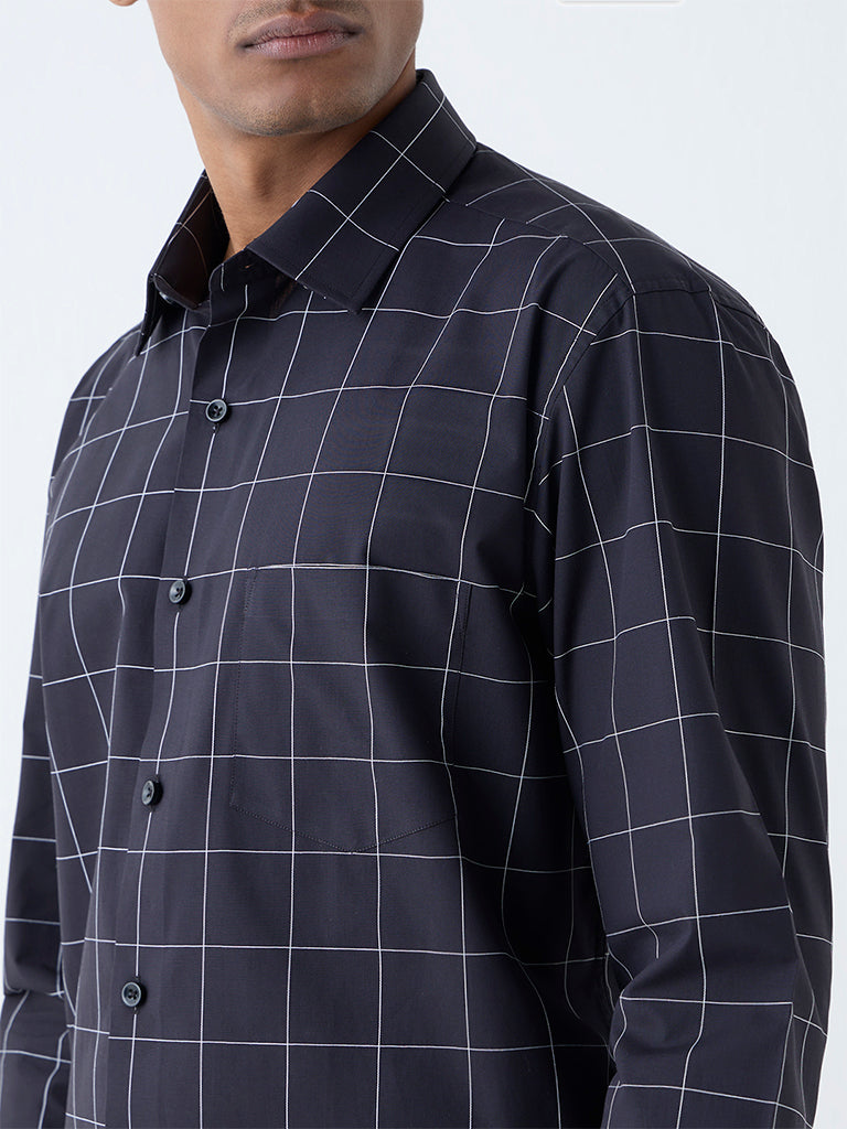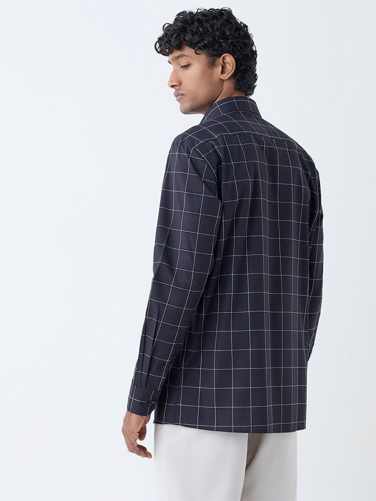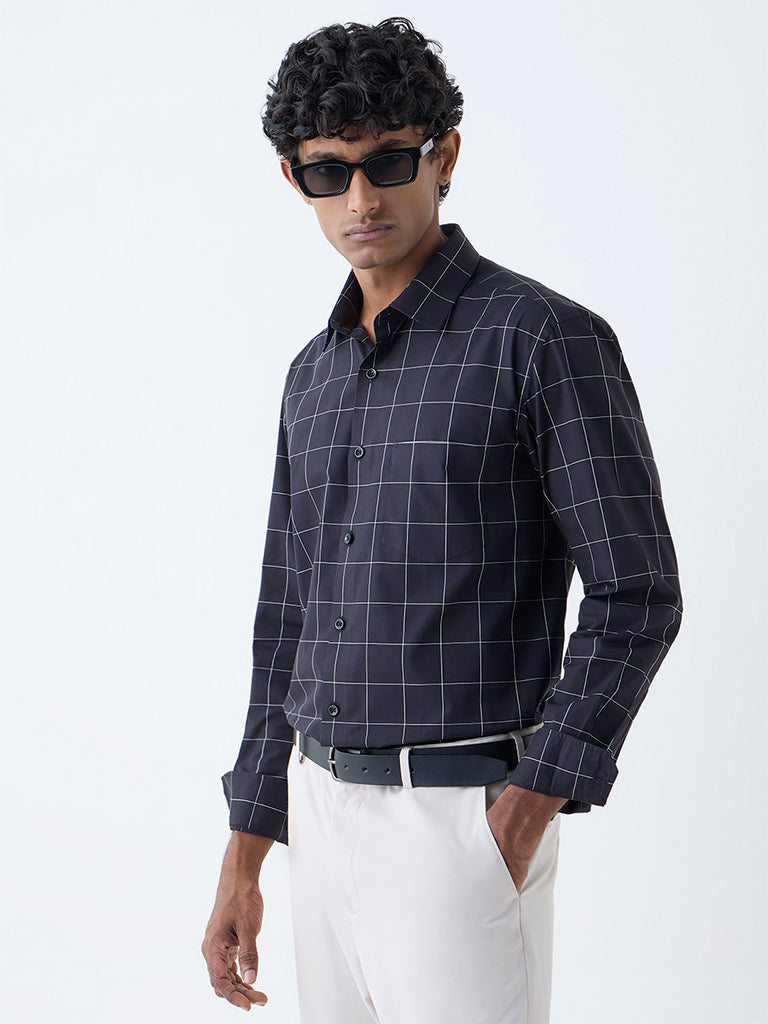 WES Formals Black Checks Pattern Relaxed-Fit Cotton Shirt