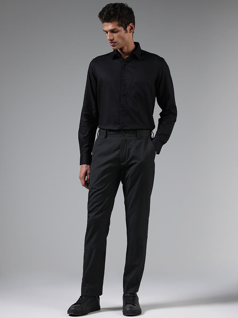 WES Formals Black Cotton Ultra-Slim Fit Shirt