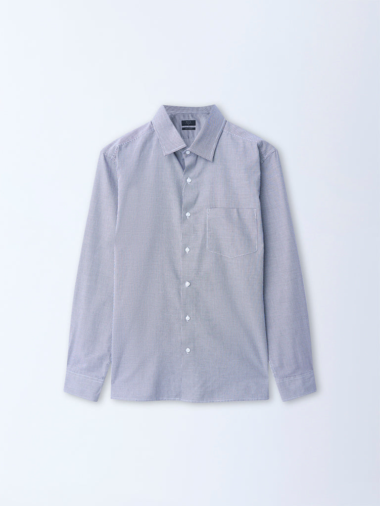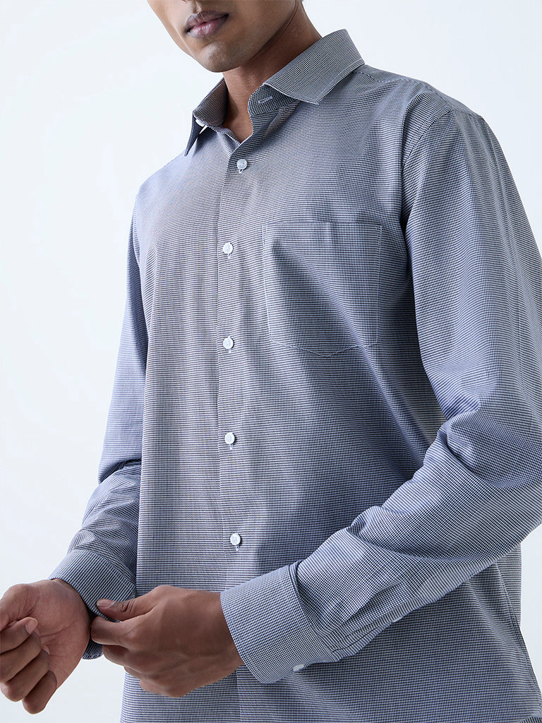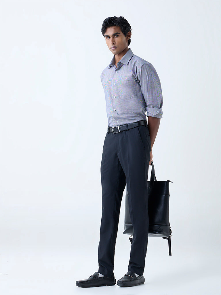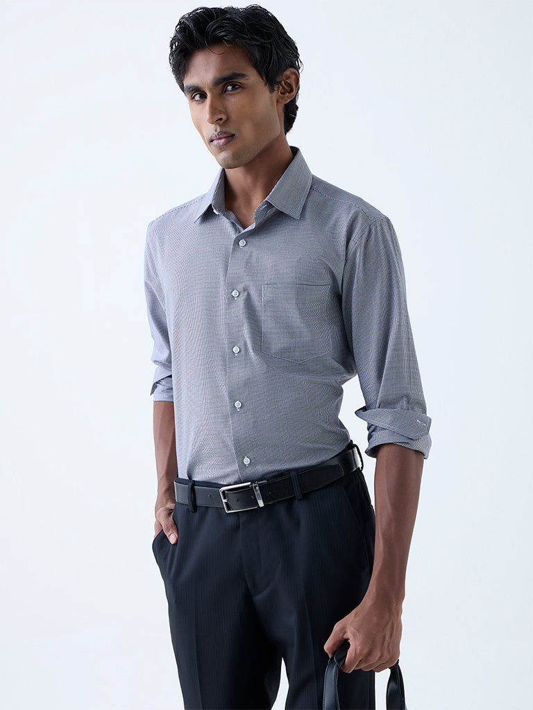 WES Formals Black Houndstooth Pattern Slim-Fit Shirt