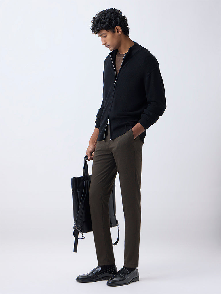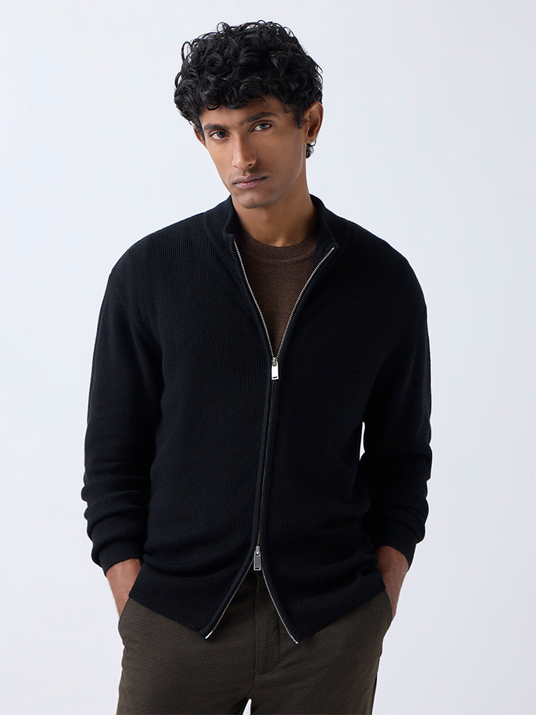 WES Formals Black Ribbed-Textured Slim-Fit Sweater