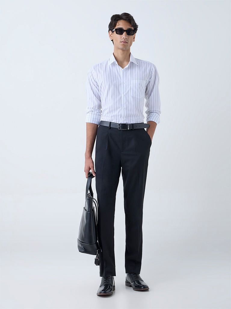 WES Formals Black Solid Relaxed-Fit Mid-Rise Trousers