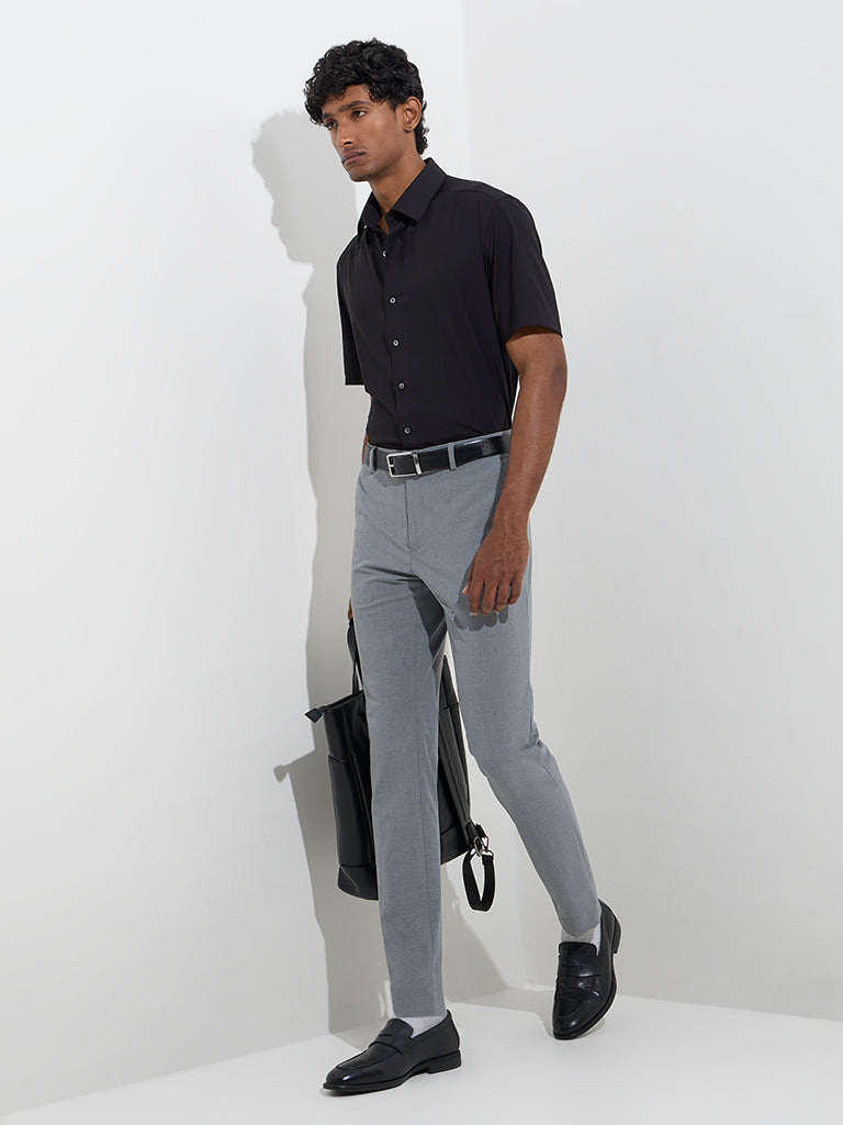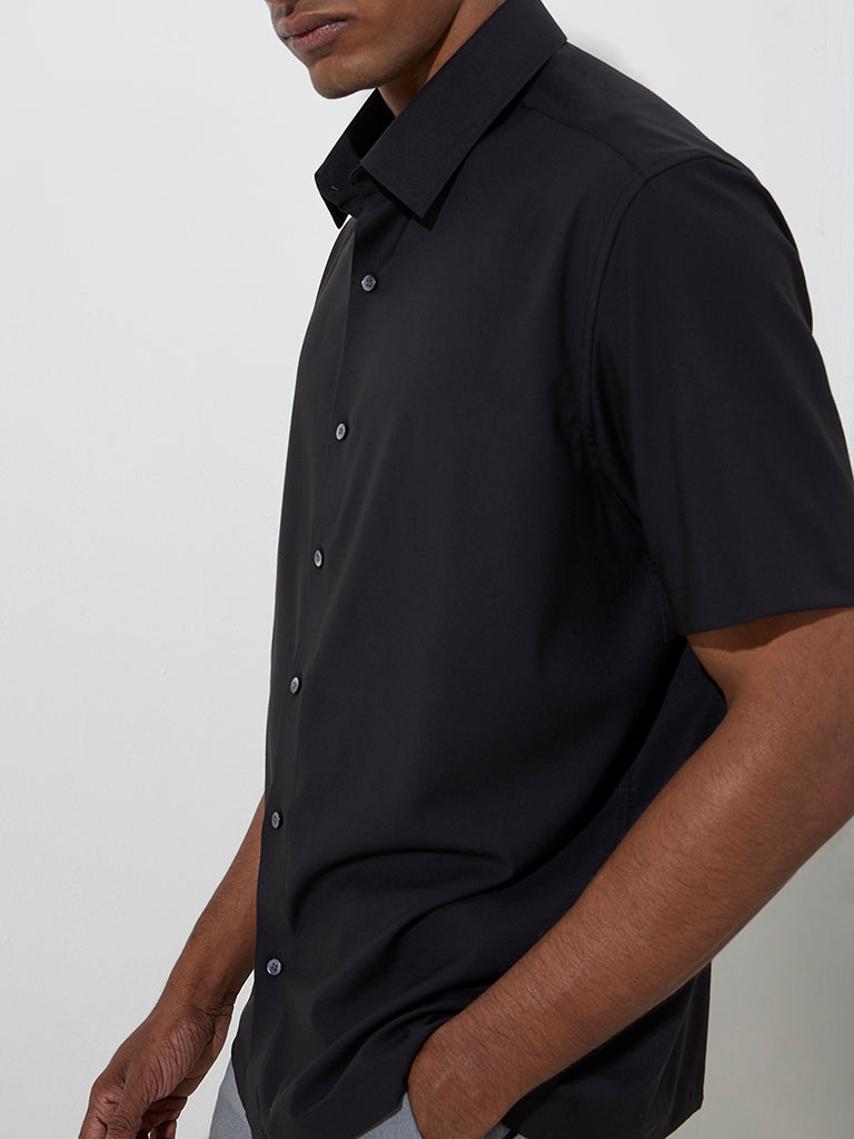 WES Formals Black Solid Slim-Fit Shirt