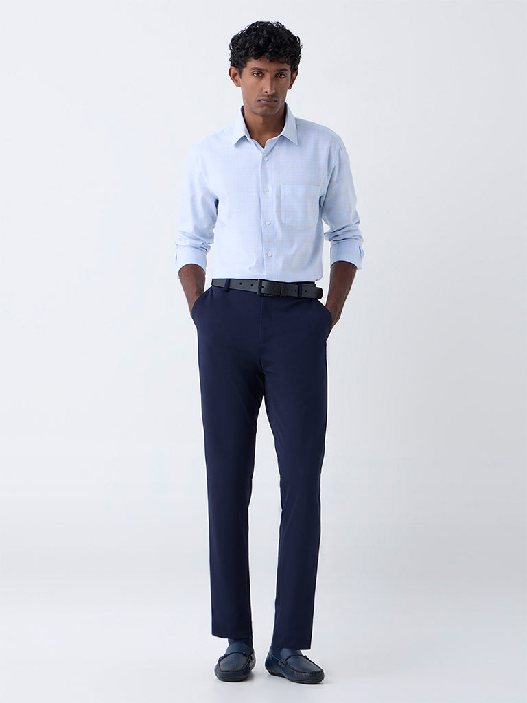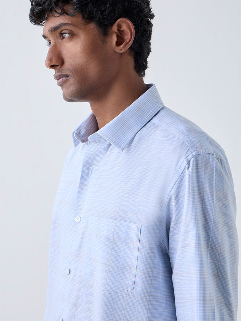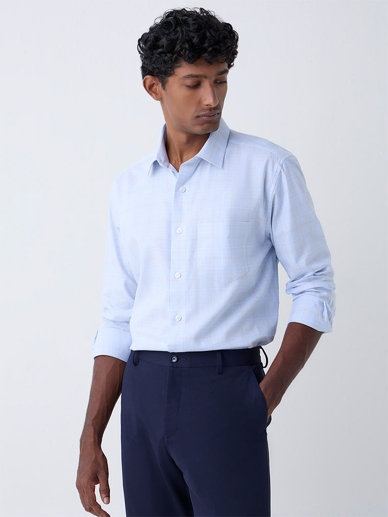 WES Formals Blue Checkered Relaxed-Fit Cotton Shirt