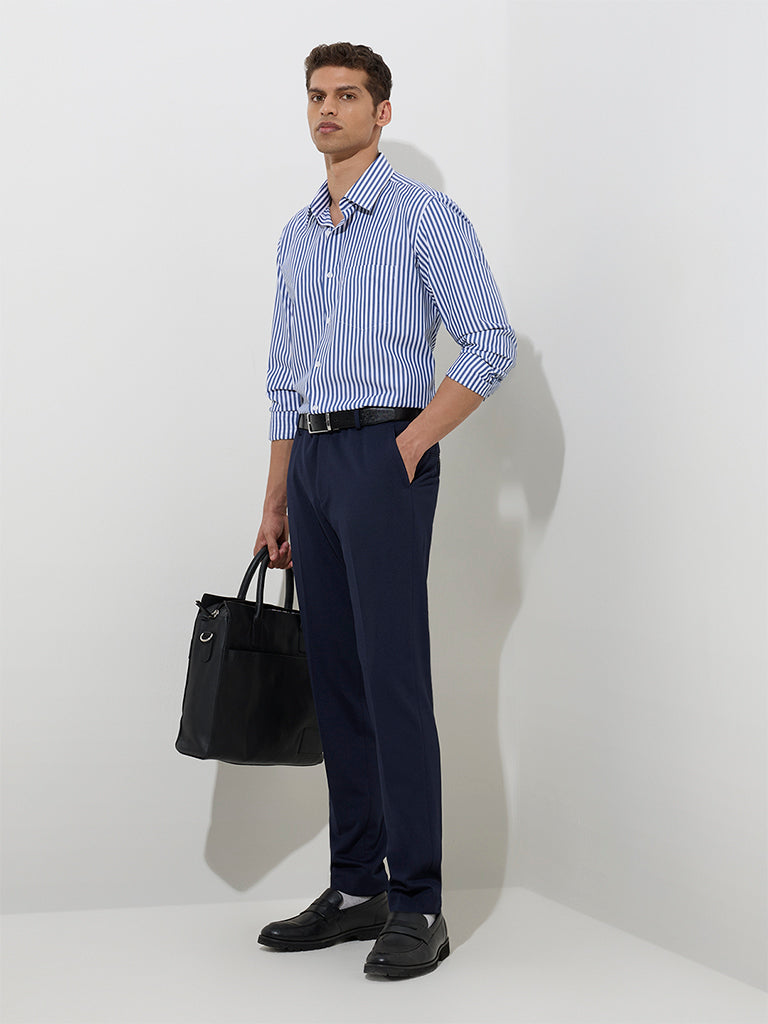 WES Formals Blue Stripe Printed Relaxed-Fit Cotton Shirt